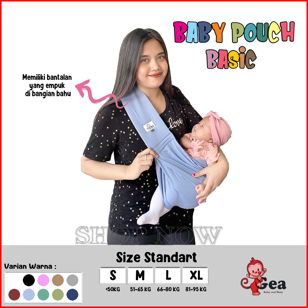Gendongan Bayi Samping Premium Geos Newborn Bahan Kaos Lembut Plus Pouch Dengan Strap Busa Empuk Di Pundak