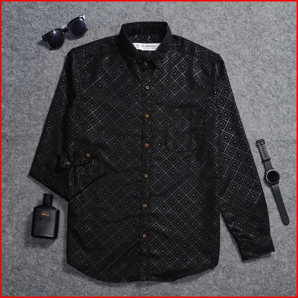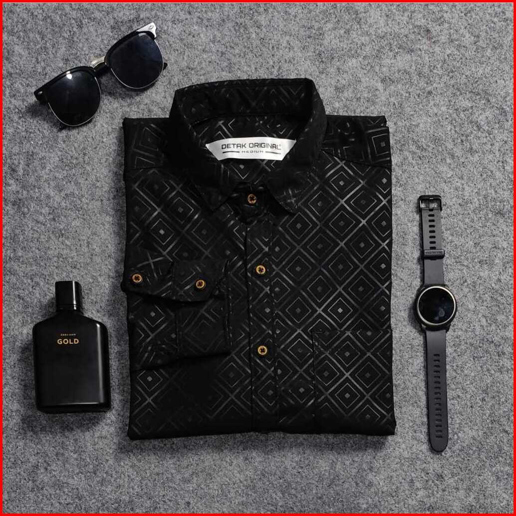 Detak Original Kemeja Embos Sultan Pria Lengan Panjang Hitam Diamond Casual Slimfit