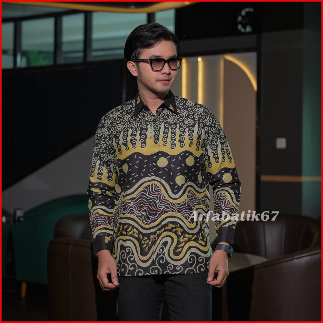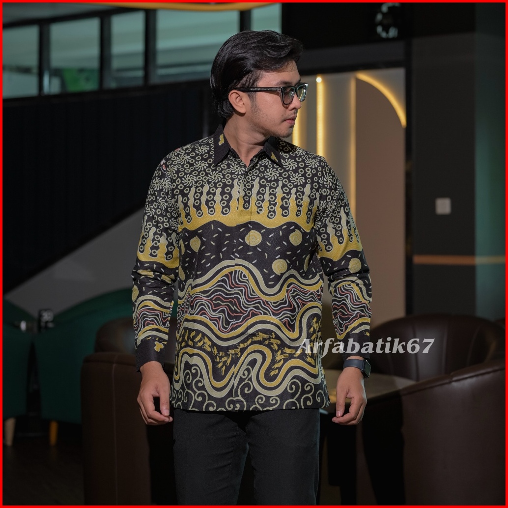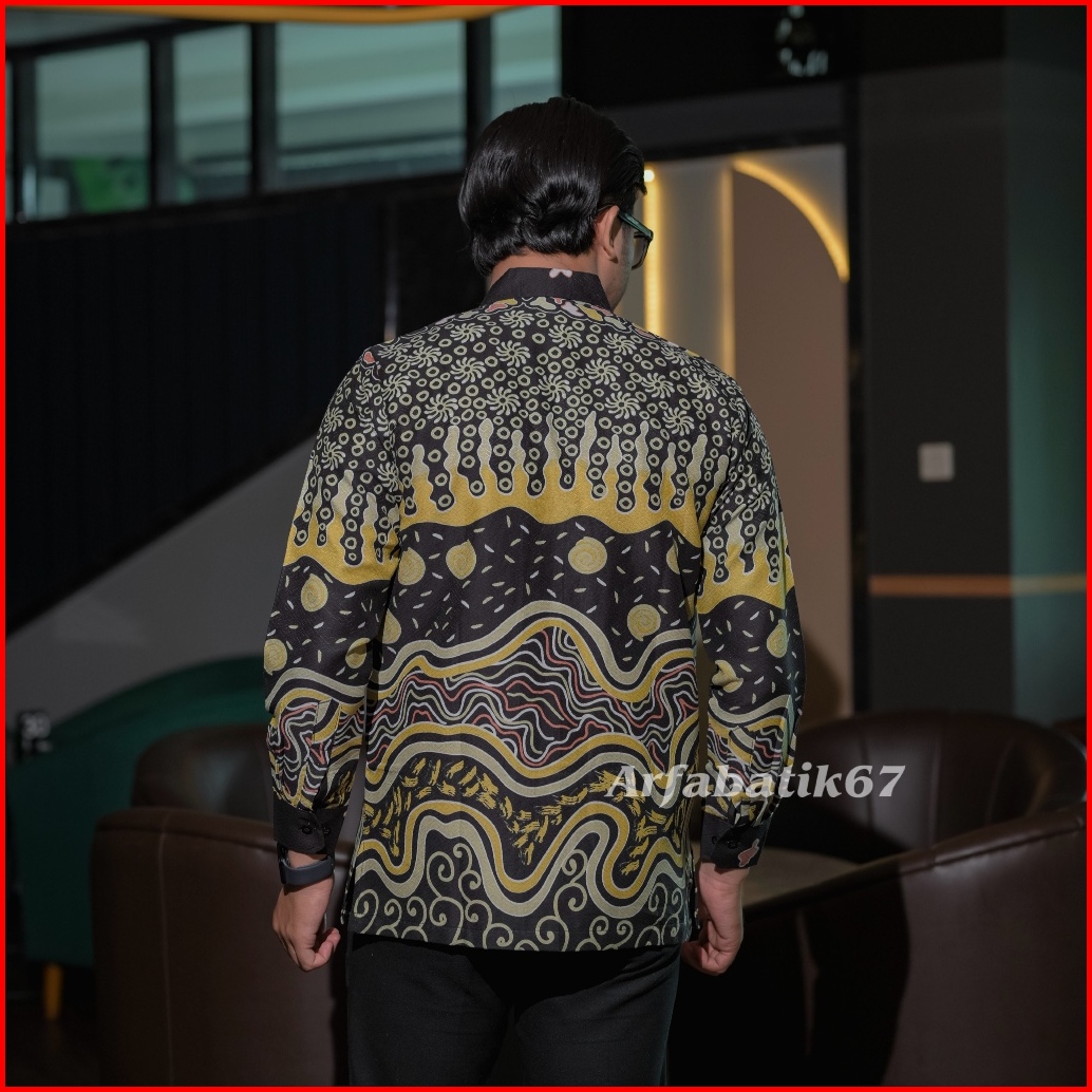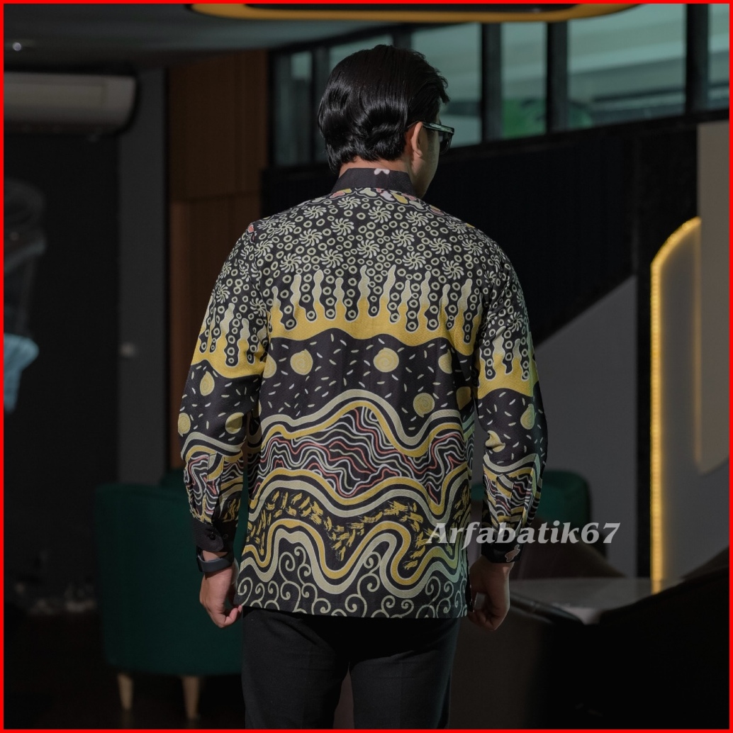 Desta Hitam Kemeja Batik Pria Tangan Panjang Doby Solo Premium Lapis Full Furing Trikot Wafle Ready Seragaman By Arfabat