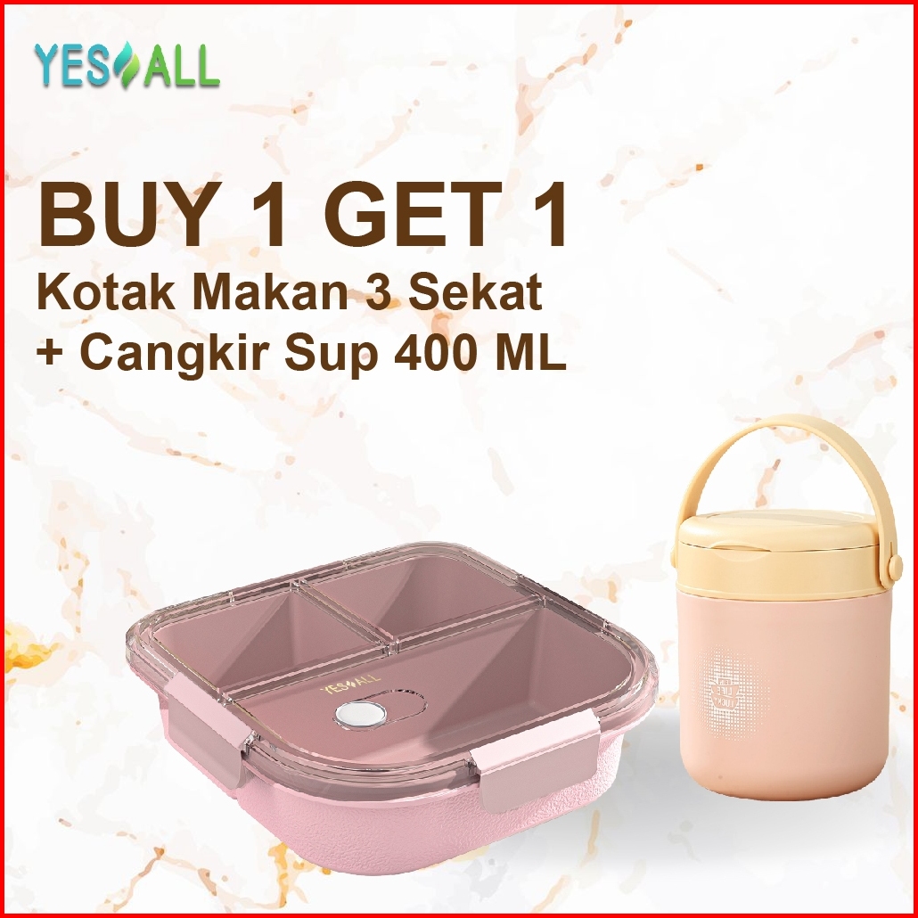 Yesall Lunch Box 3 Sekat Cangkir Sup Portable 400ml - Kotak Makan Anti Tumpah Portable Soup Cup - Buy 1 Get 1