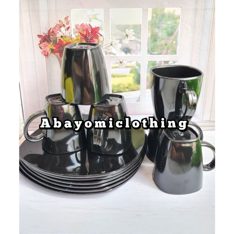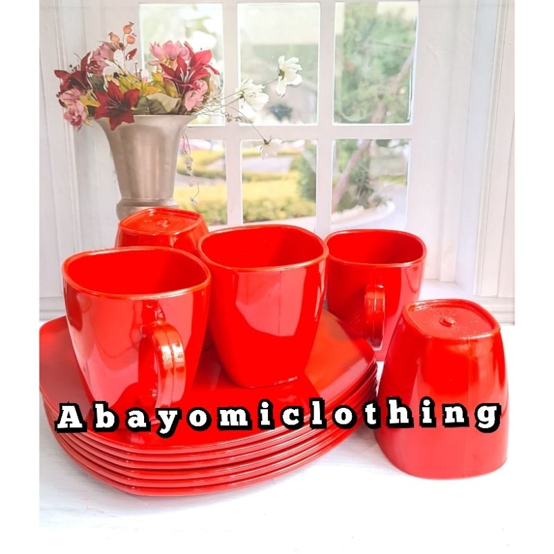 PAKET SET MURAH 4 PIRING MAKAN 4 CANGKIR KOTAK MELAMIN TEBAL
