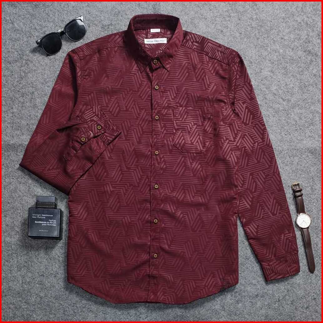 Detak Original Kemeja Embos Sultan Pria Lengan Panjang Puzzle Marun Casual Slimfit