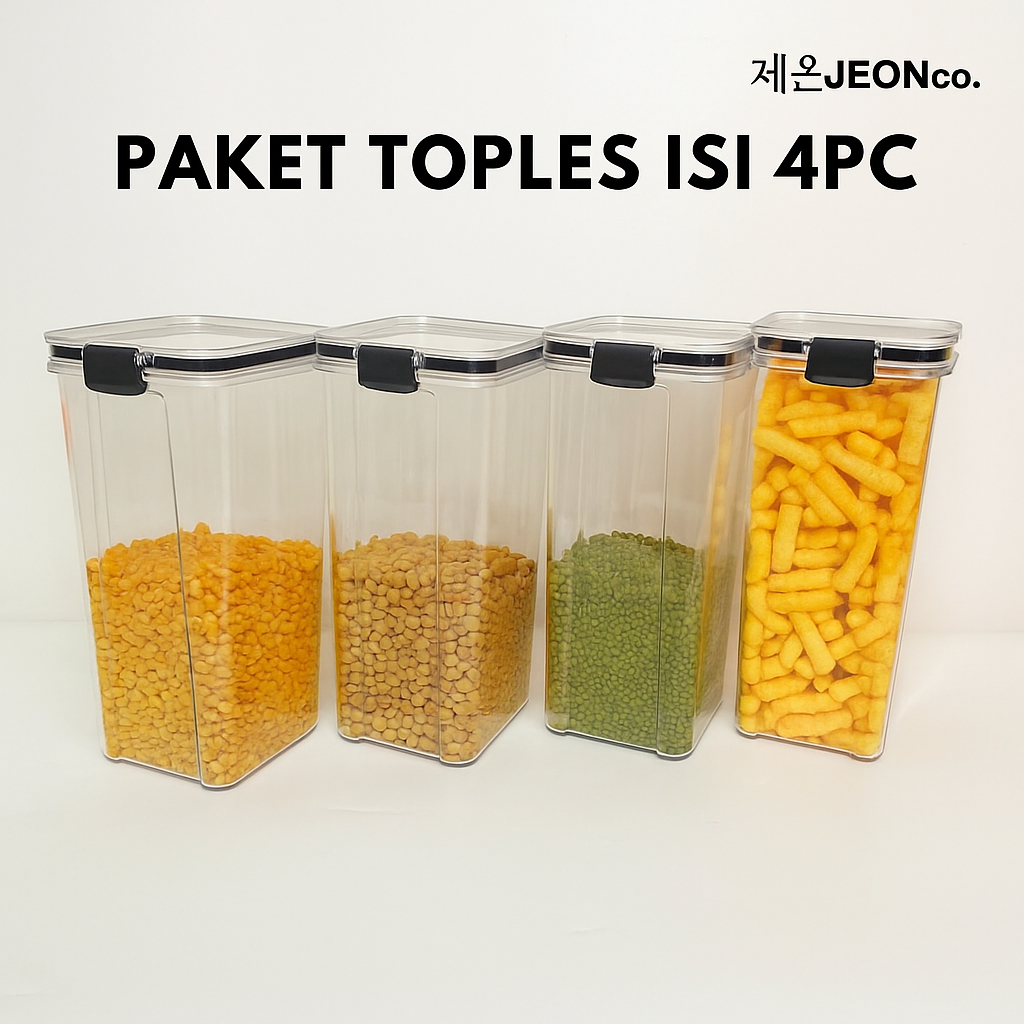 PAKET TOPLES 4PCS Kedap Udara 1300ml & 1800ml Tempat Penyimpanan Makanan Kedap Udara Food Storage