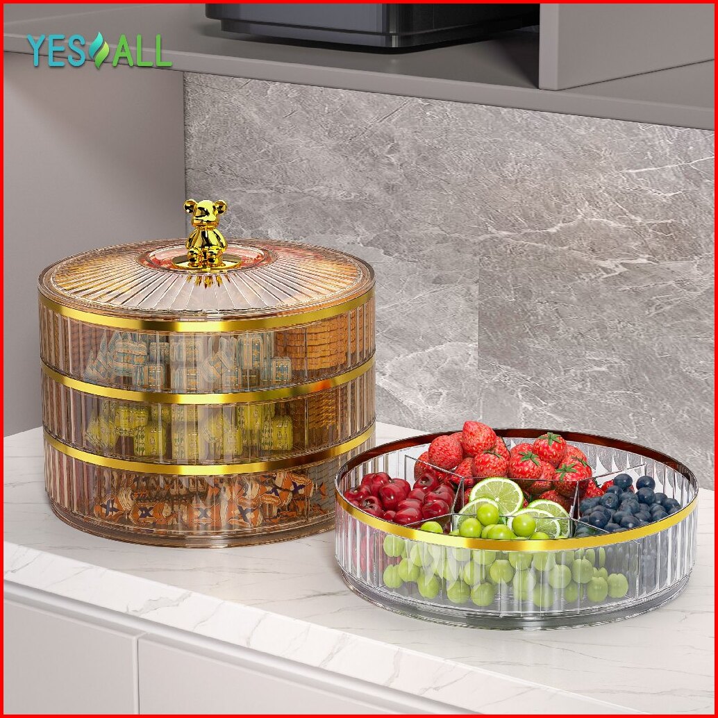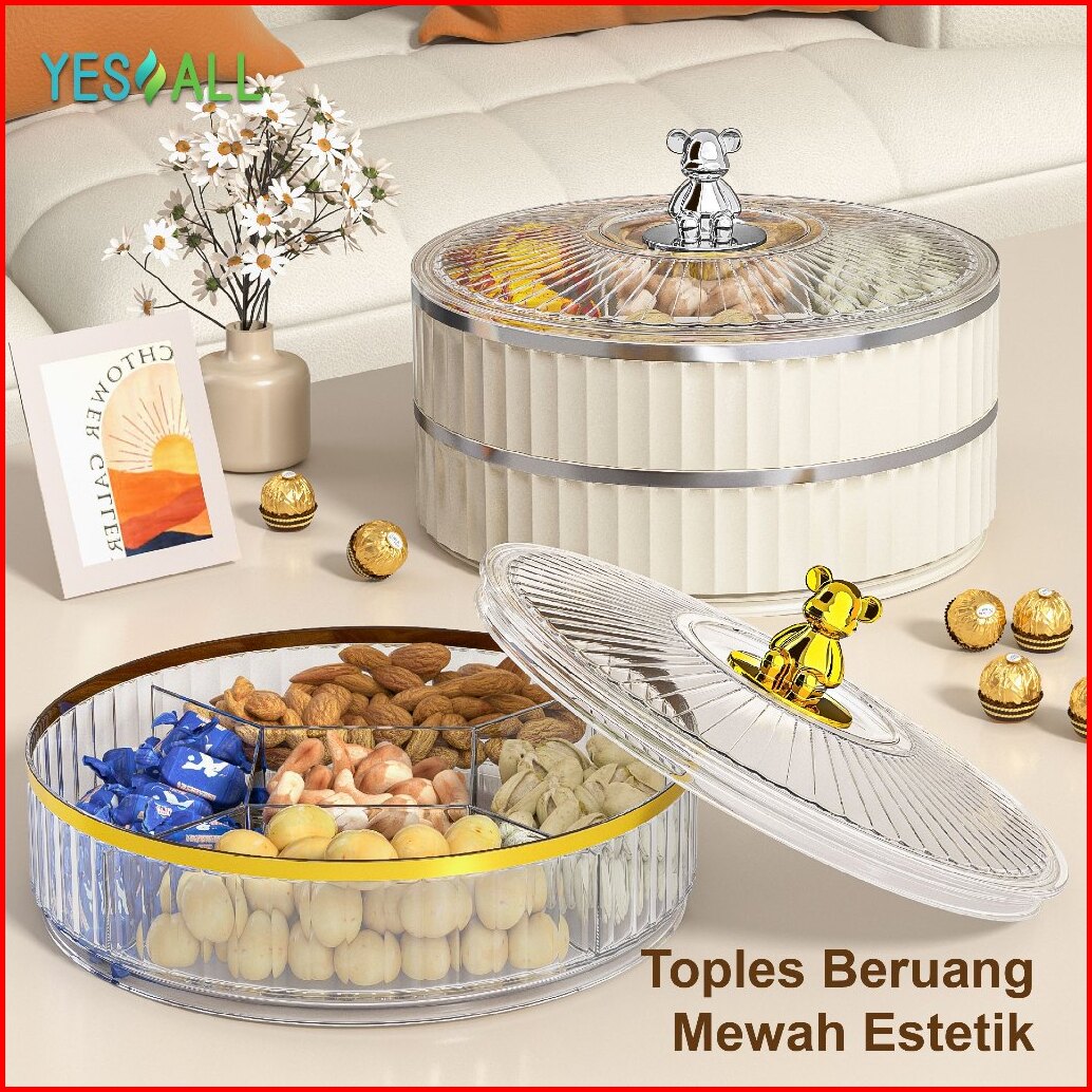 Yesall Toples Aesthetic Tingkat Beruang - Toples Lebaran Rak Putar Snack Cemilan Toples Kue Kering Tempat Makanan Kotak