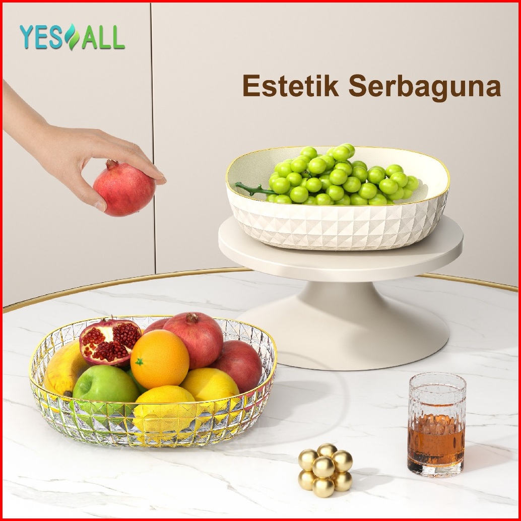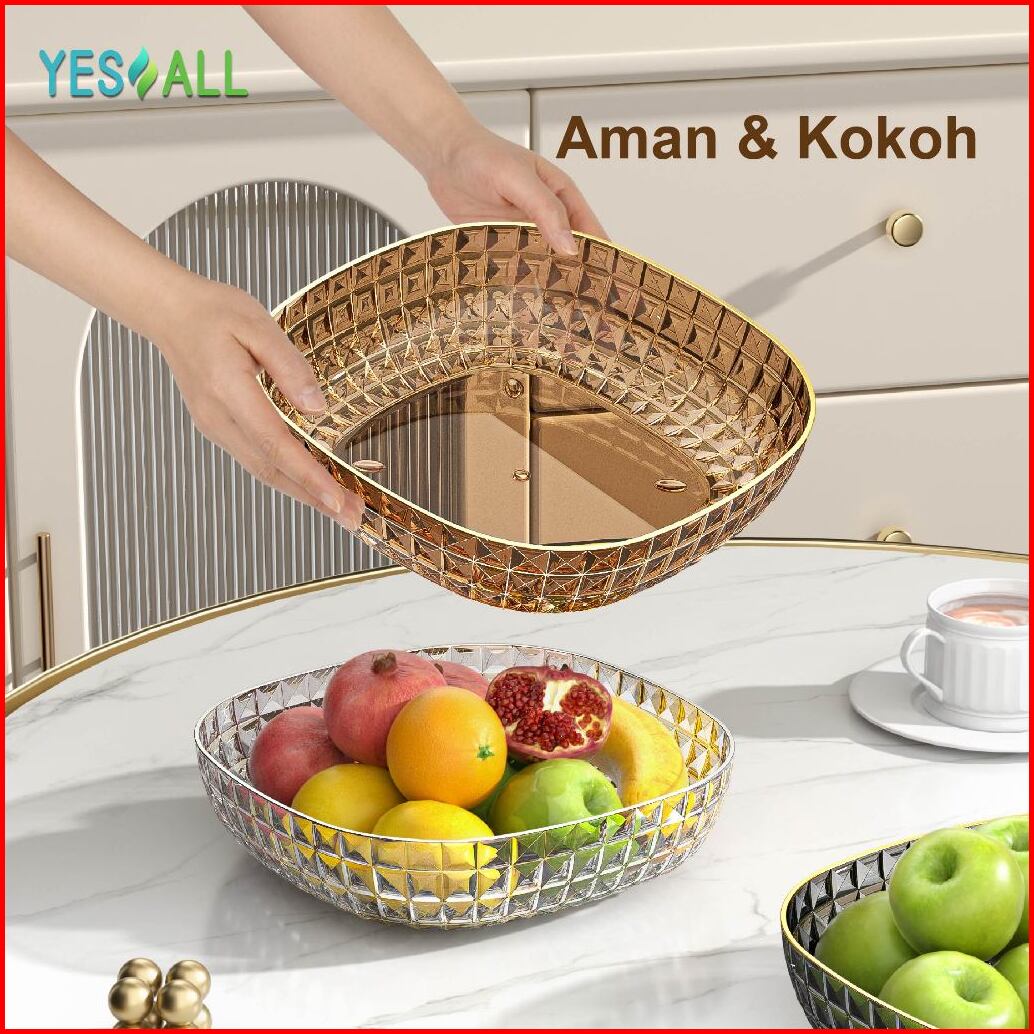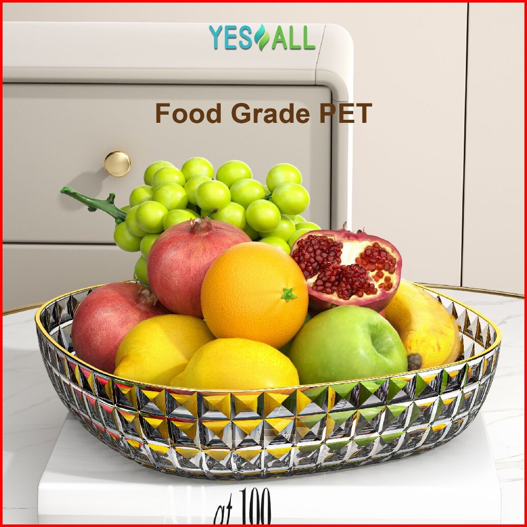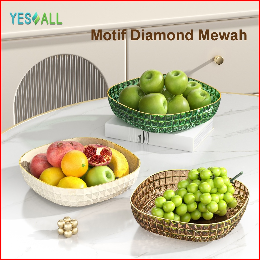Yesall Piring Saji Kotak 24cm Motif Diamond Nampan Plastik Pet Food Grade Buah Kue Salad Dessert Serbaguna Estetik