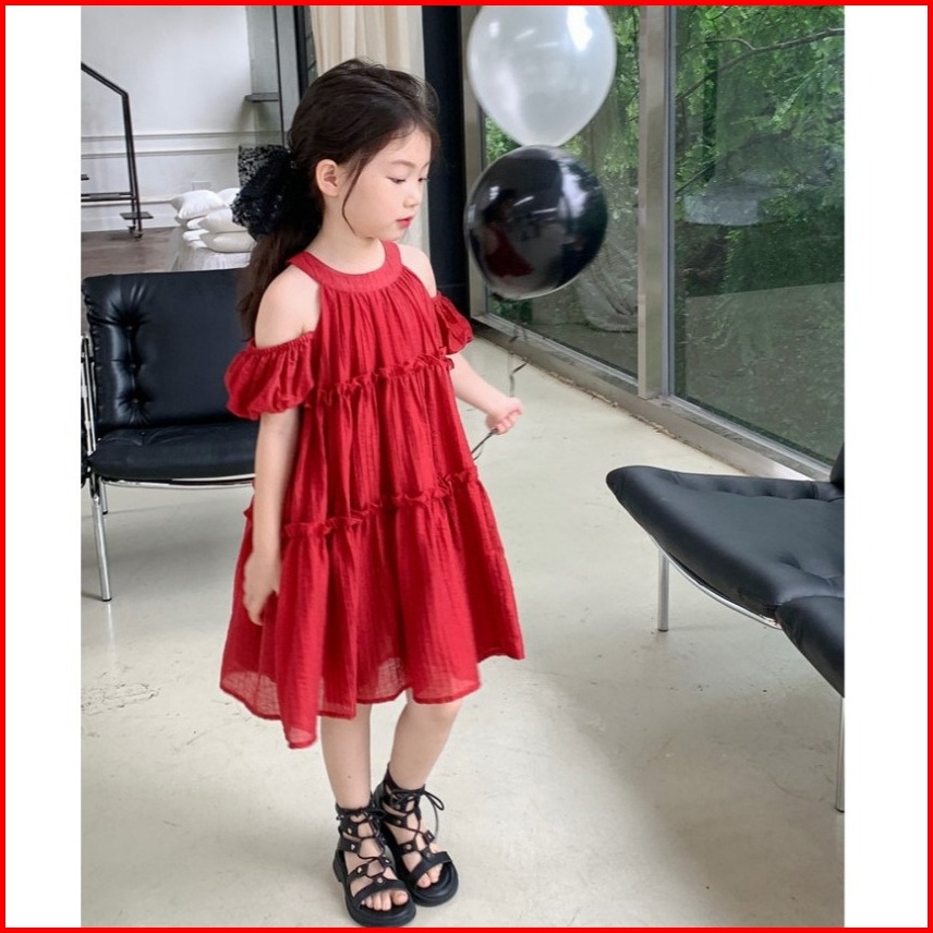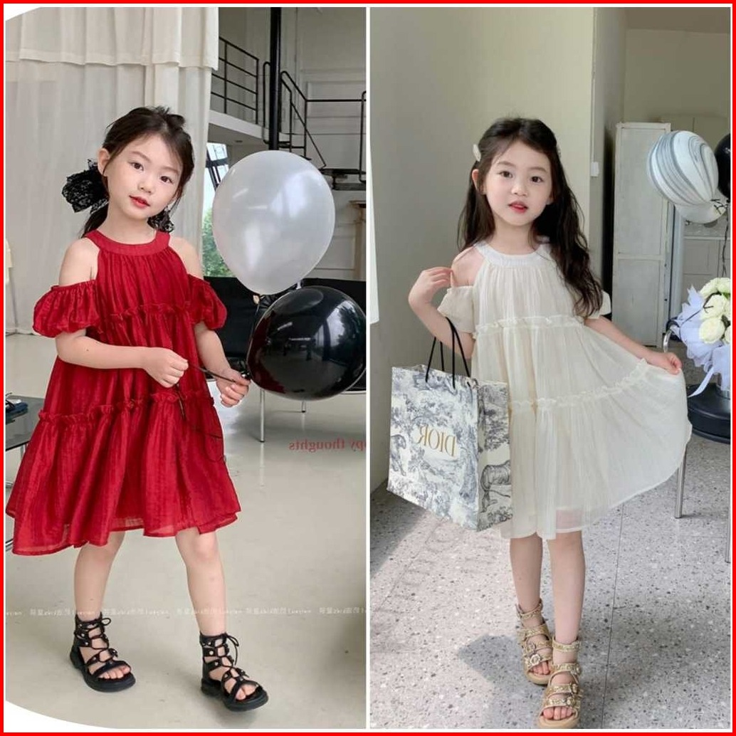 Chubbi 30 Dress Anak Gaun Perempuan Ruffle Sabrina Cut Sleeve