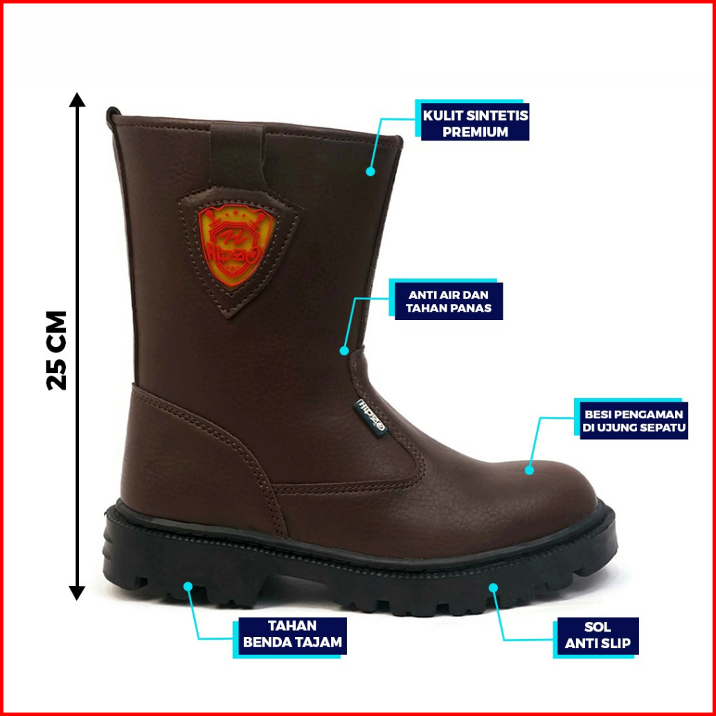 Hipzo Sepatu Boots Safety Ujung Besi M057 Original Untuk Kerja Proyek Pria