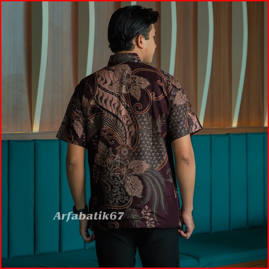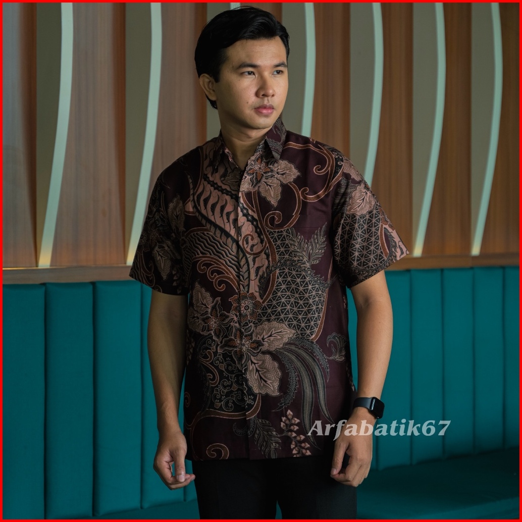 Parsha Mahogany Kemeja Batik Pria Lengan Pendek Katun Prima Premium Lapis Furing Hero Ready Seragaman By Arfabatik67