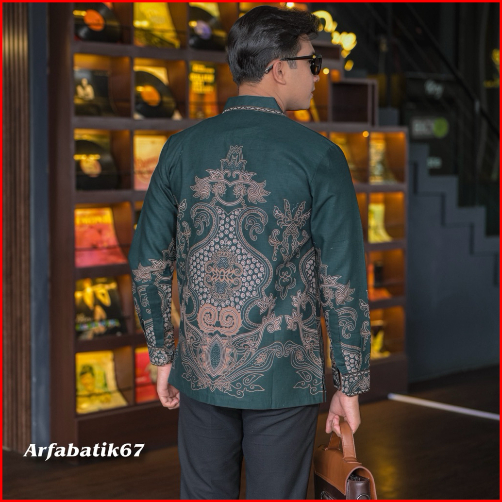 Sadewa Hijau Kemeja Batik Smock Bordir Pria Katun Prima Premium Lengan Panjang Lapis Full Furing Trikot Wafle Full Sampa