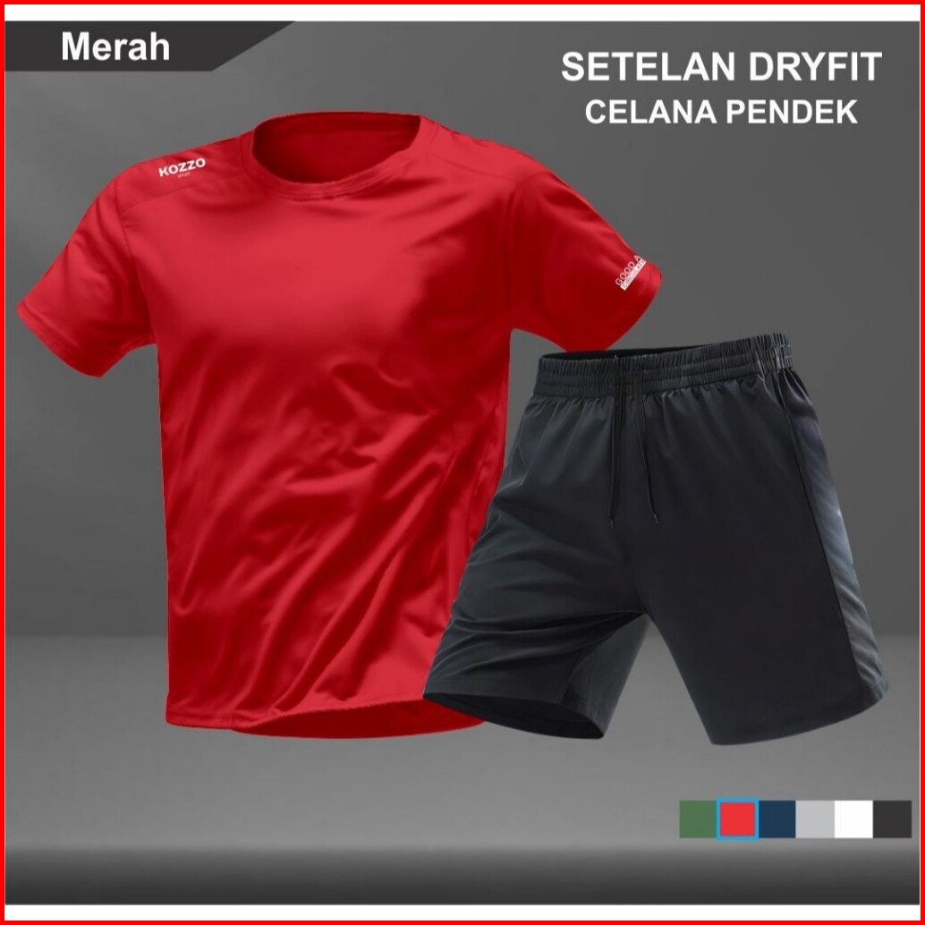 Baju Olahraga Gym Pria Kozzo Set Kaos Dry Fit Dan Celana Pendek Lari Nyaman Tanpa Saku