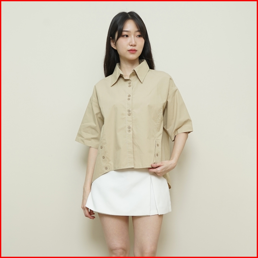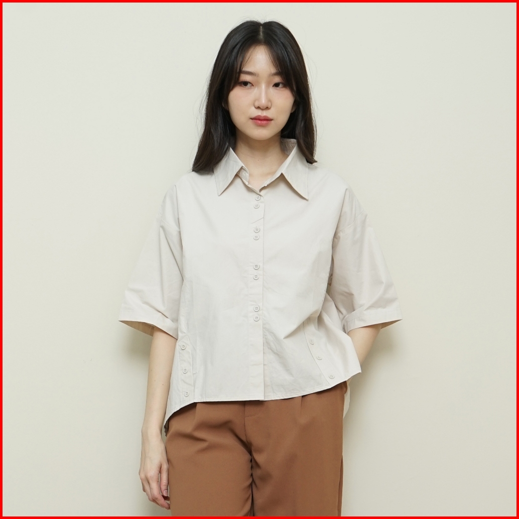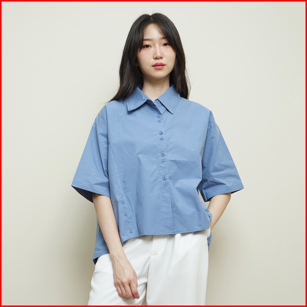 Queentin Kemeja Wanita Boxy 1215 Cotton Wash Polos Lengan Pendek