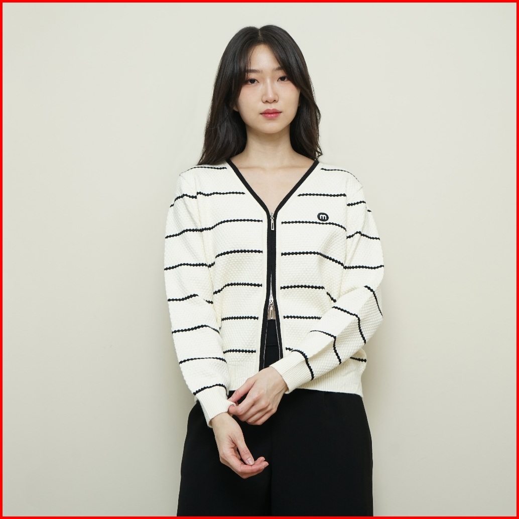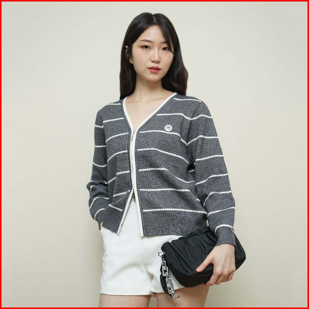 Queentin Cardigan Wanita Rajut Double Zipper 6507 Honeycomb Knit Stripe Lengan Panjang