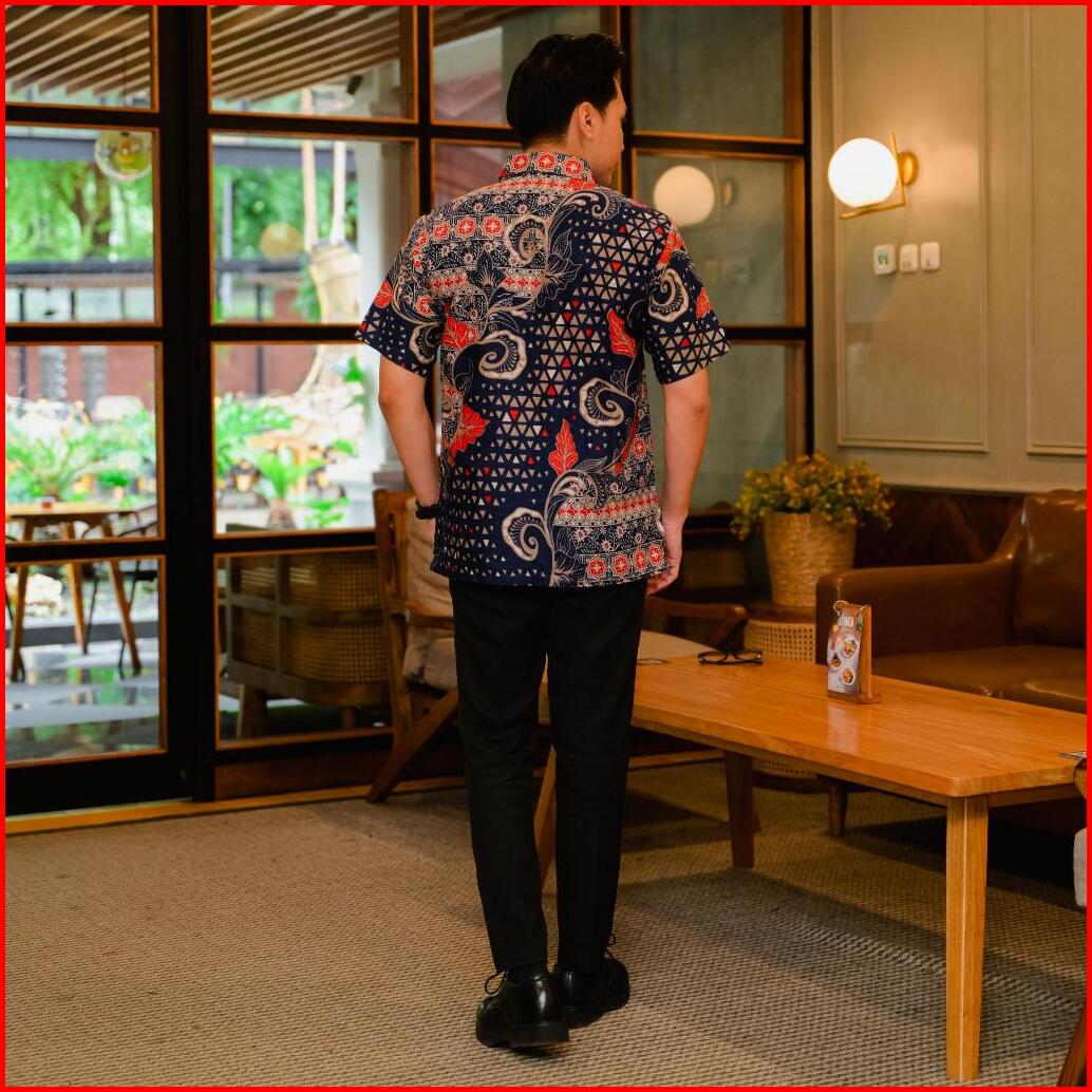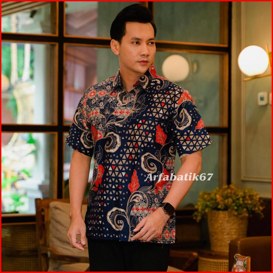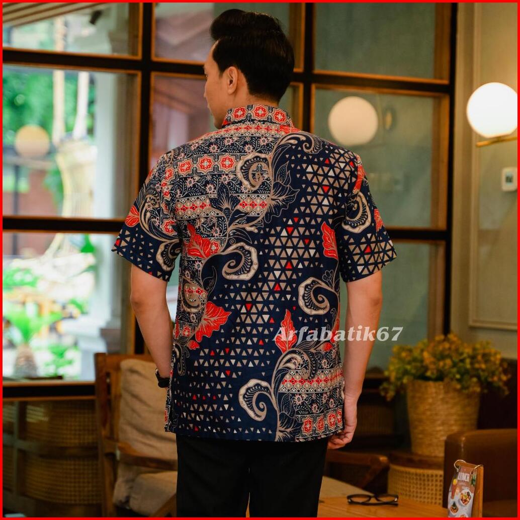 Widoro Navy Baju Batik Pria Lengan Pendek Katun Prima Premium Lapis Furing Hero By Arfabatik67