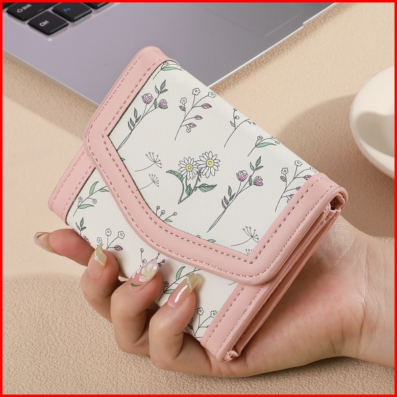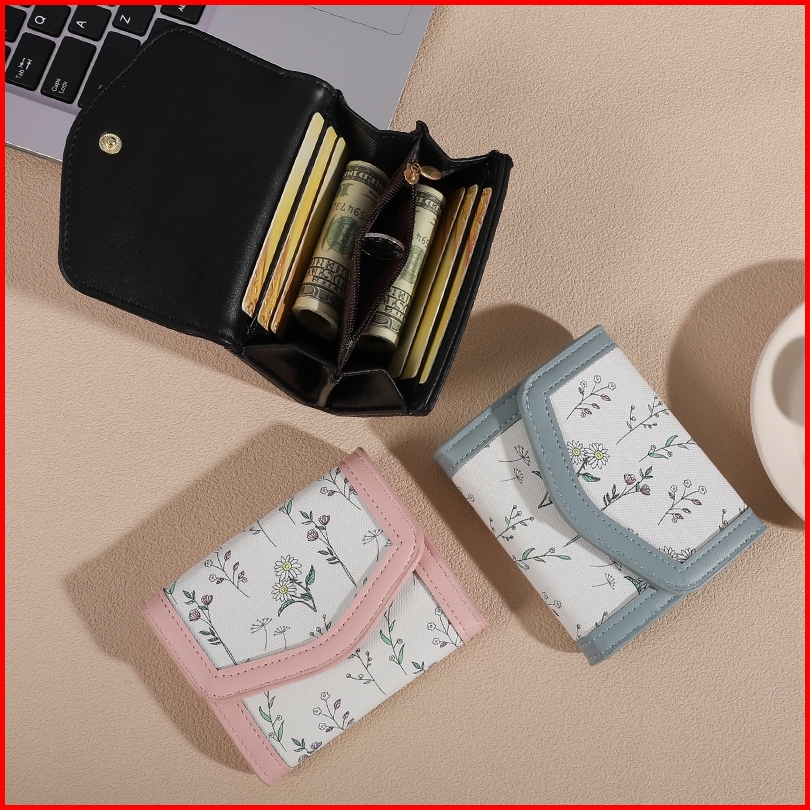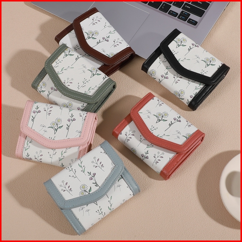 Holo Dompet Lucu Aesthetic Mini Dompet Lipat Kulit Wanita 3 Ruang Dompet Kartu 6 Slot