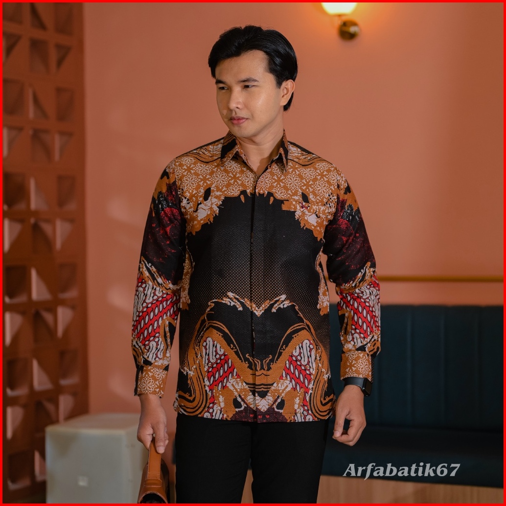 Bahar Hitam Kemeja Batik Pria Tangan Panjang Doby Solo Premium Lapis Full Furing Trikot Wafle Ready Seragaman By Arfabat