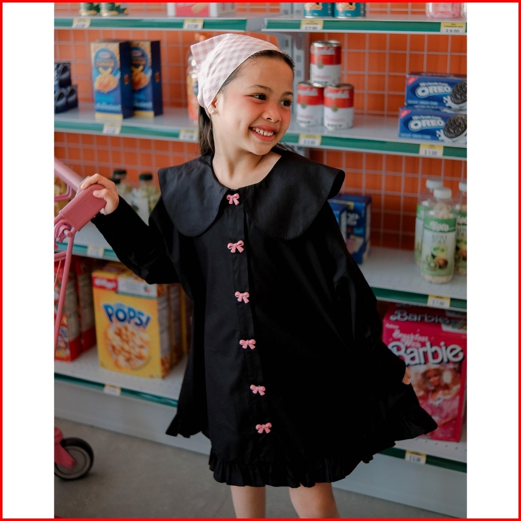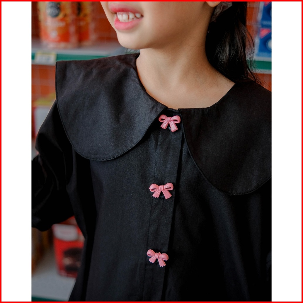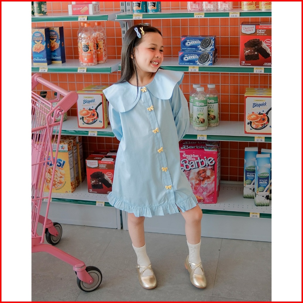 Cecily Dress Hunny Bunny Gaun Pastel Bow Button Anak Perempuan Dress Peterpan Collar