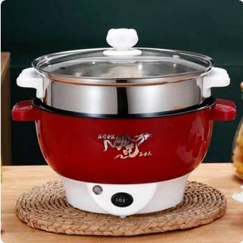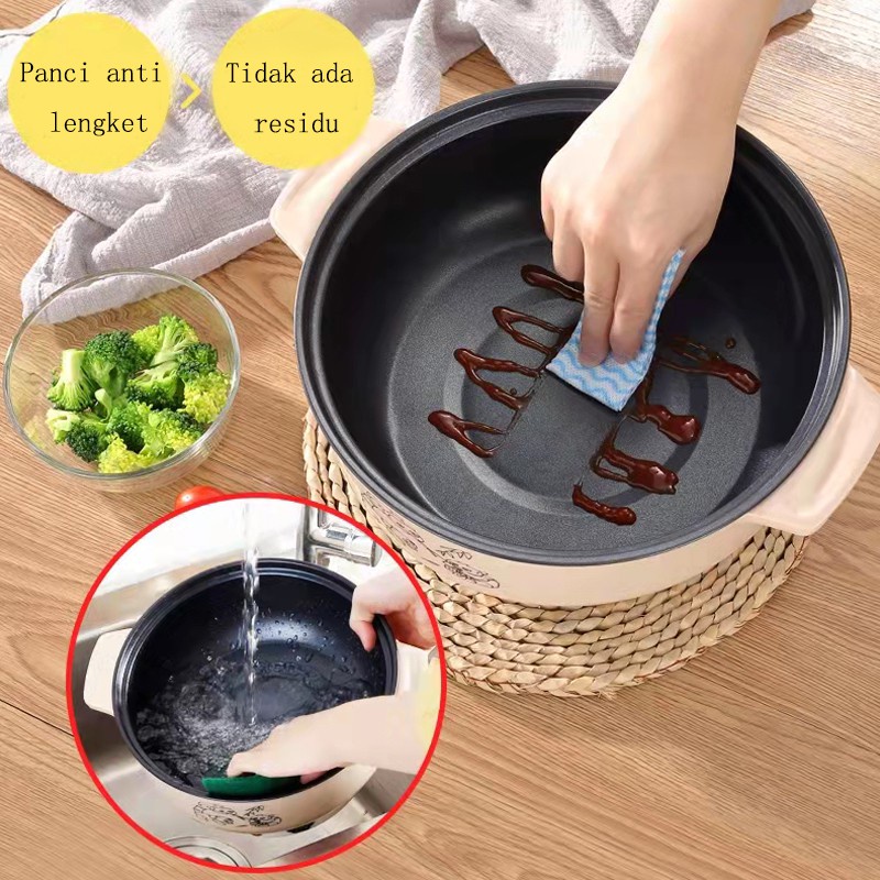 Panci Listrik 2 In 1 Multifungsi Anti Lengket Panci Kukus Free Steamer Kukusan Stainless Kapasitas 2 Liter dan 3.3 Liter