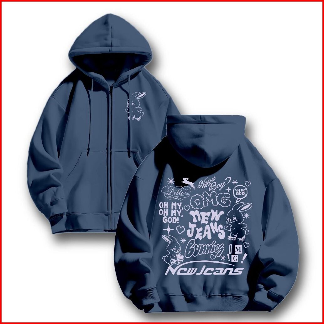 Hoodie Zipper Jaket Sweclo.id Oversize Bunnies New Jeans Sablon M-xxl Pria Wanita 280gsm