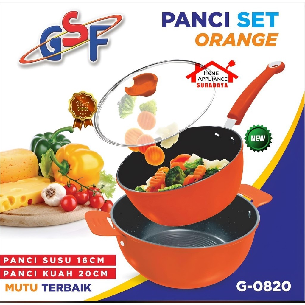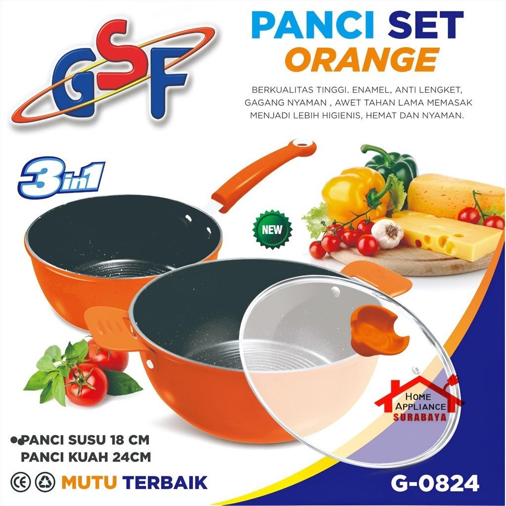 Panci Set Orange 3 PCS - Panci Mie / Susu 16 18 CM + Panci Kuah 20 24 CM Anti Lengket GSF-0820 / GSF 0824