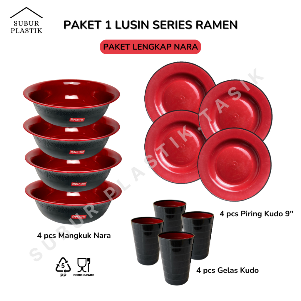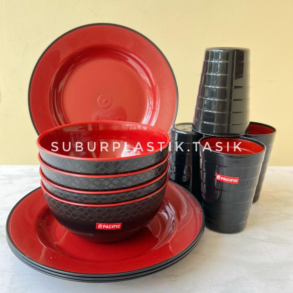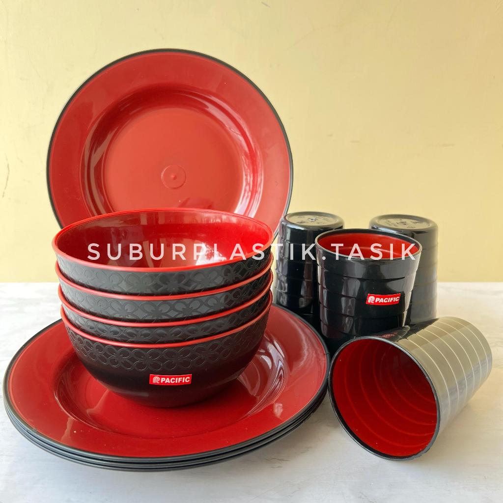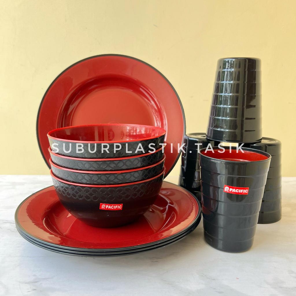 PROMO 1 LUSIN Paket Lengkap Series Ramen Pacific 4 Mangkok 4 Piring 4 Gelas Plastik BPA Free Komplit
