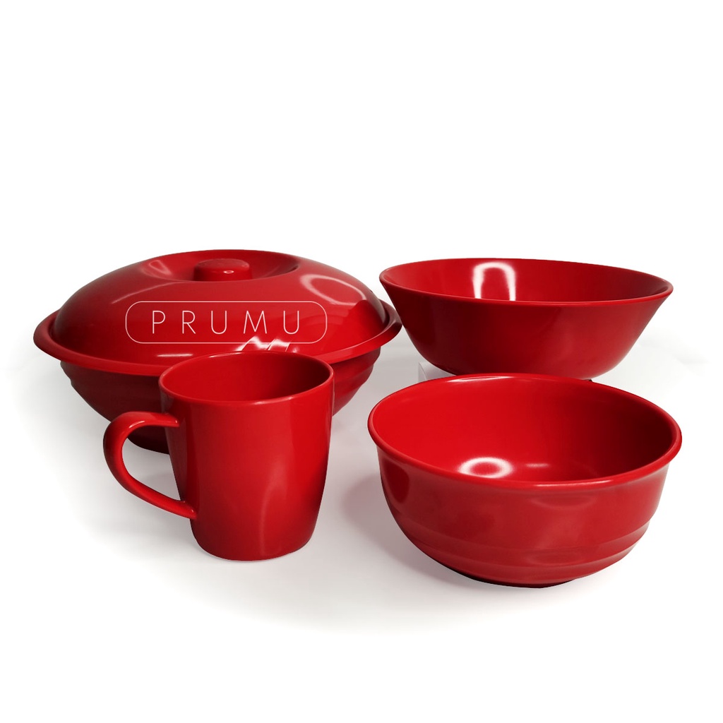 PRUMU Melamin Set Monthly Special - Paket Piring Mangkok Gelas Sendok Garpu Melamin