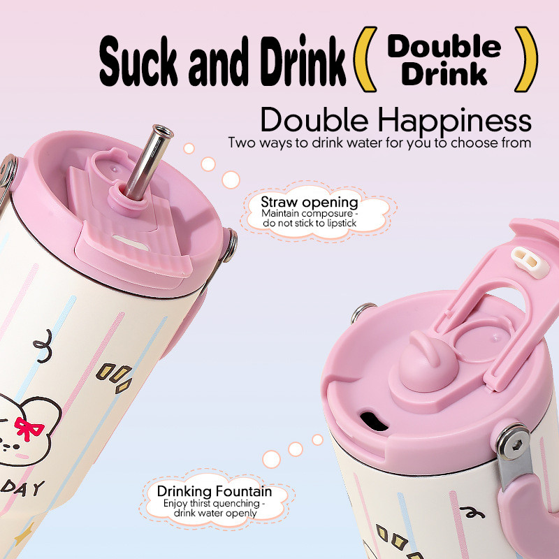 RoxArt Tumbler Stainless 900ML Termos Vacuum Insulated Portable Stainless Steel Built in Straw
