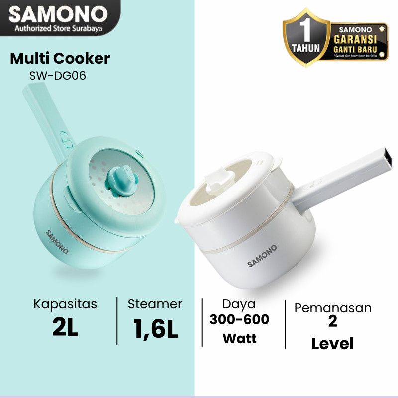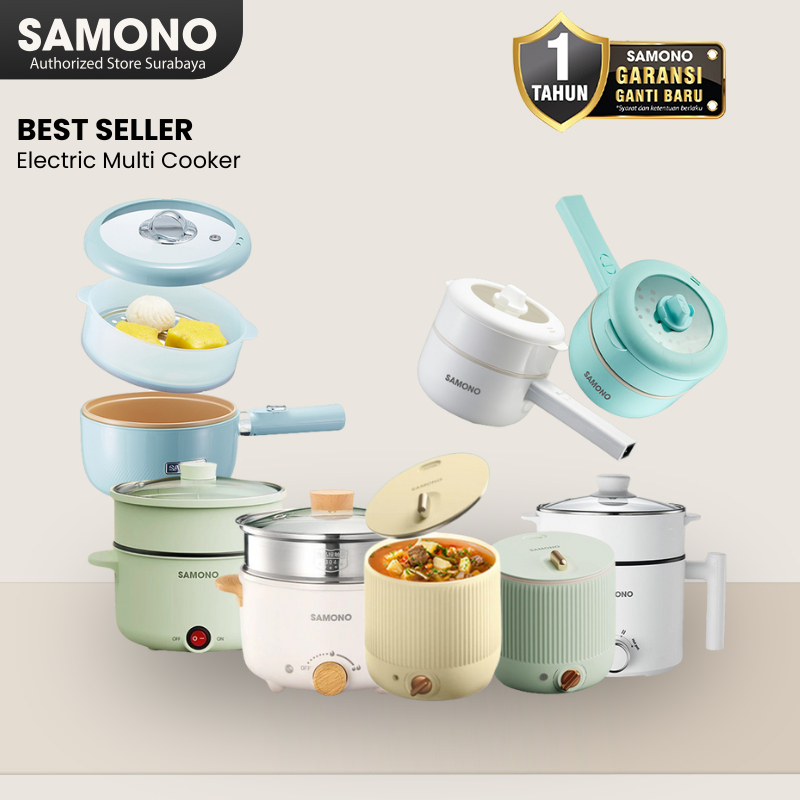 SAMONO Panci Listrik Best Seller Low Watt Double Protection Anti Lengkat Lapisan Ceramic Original Food Grade Penutup Kaca Menggoreng Mengukus Memasak Nasi BBQ Hotpot Garansi 1 Tahun