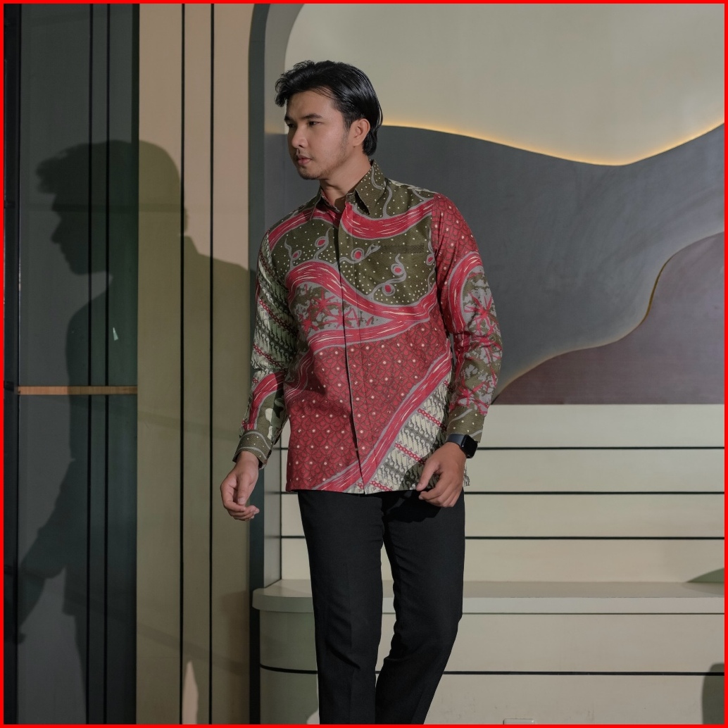 Kemeja Batik Pria Lengan Panjang Doby Solo Premium Lapis Full Furing Trikot Wafle By Arfabatik67 Mardu Hijau Lumut