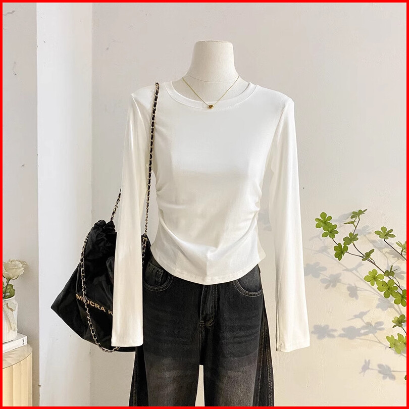 Kaos Lengan Panjang Crew Neck Abu-abu Berkualitas Tinggi