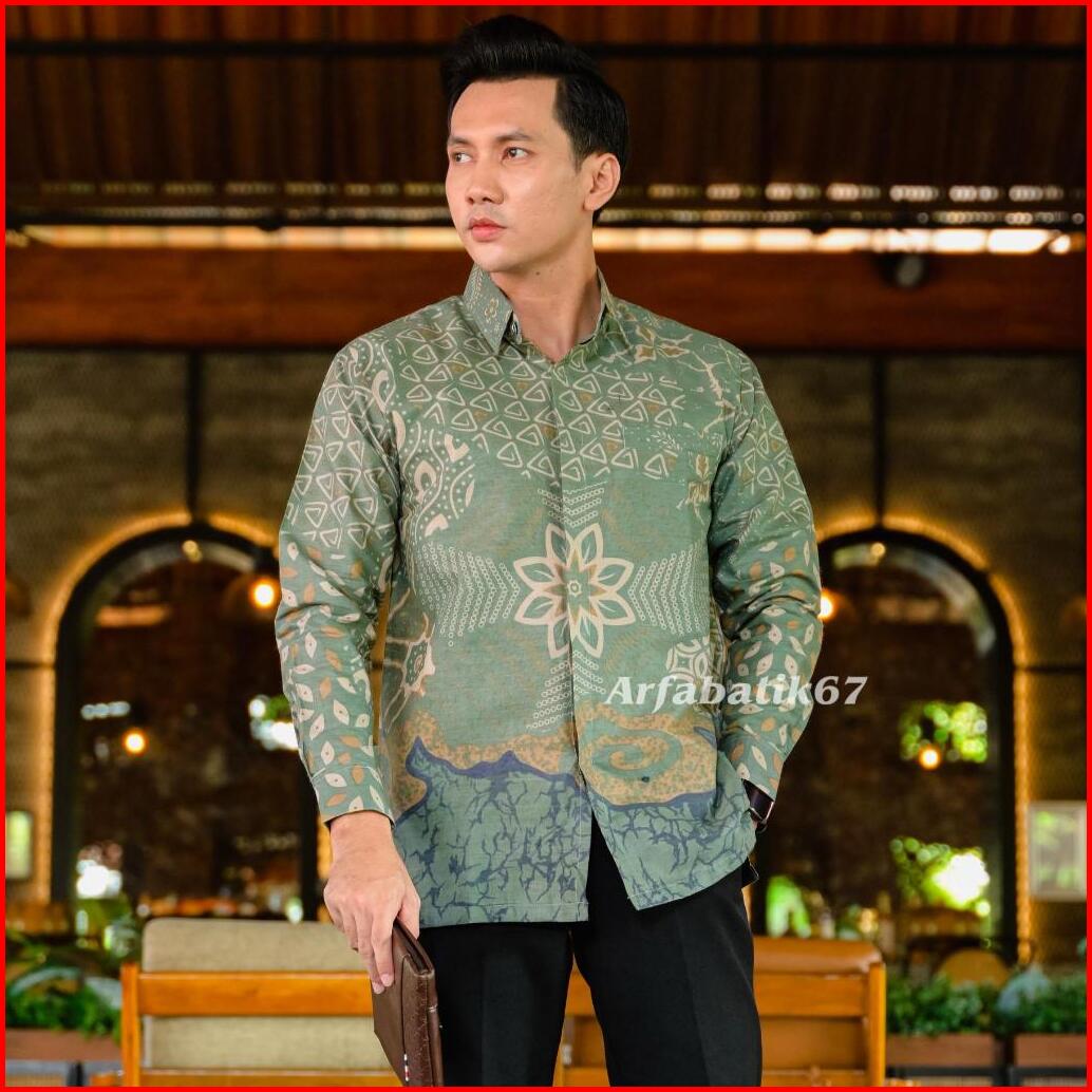 Teratai Sage Green Kemeja Batik Pria Lengan Panjang Katun Prima Premium Lapis Furing Hero Ready Seragaman By Arfabatik67