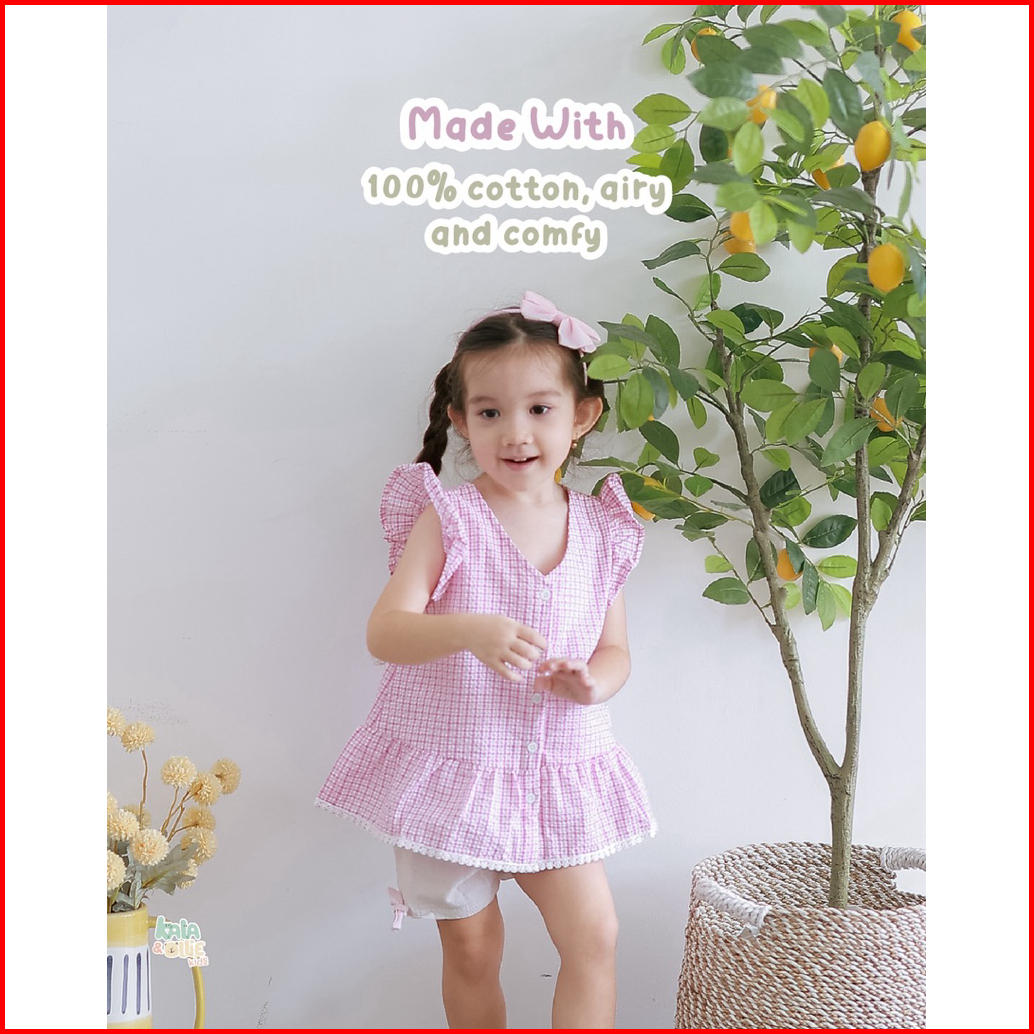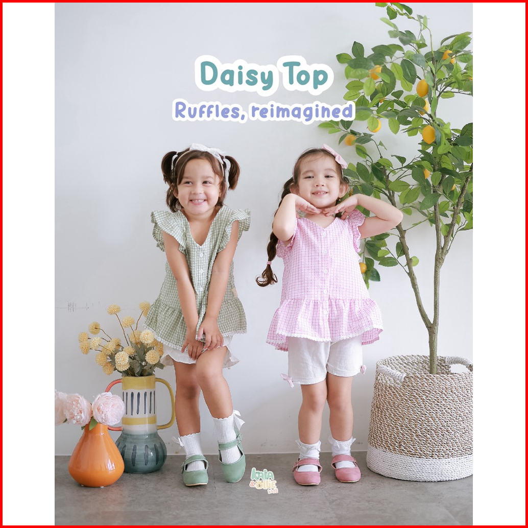 Kalaollie Daisy Top Atasan Kotak-kotak Balita Anak Perempuan Atasan Ruffle Anak Perempuan