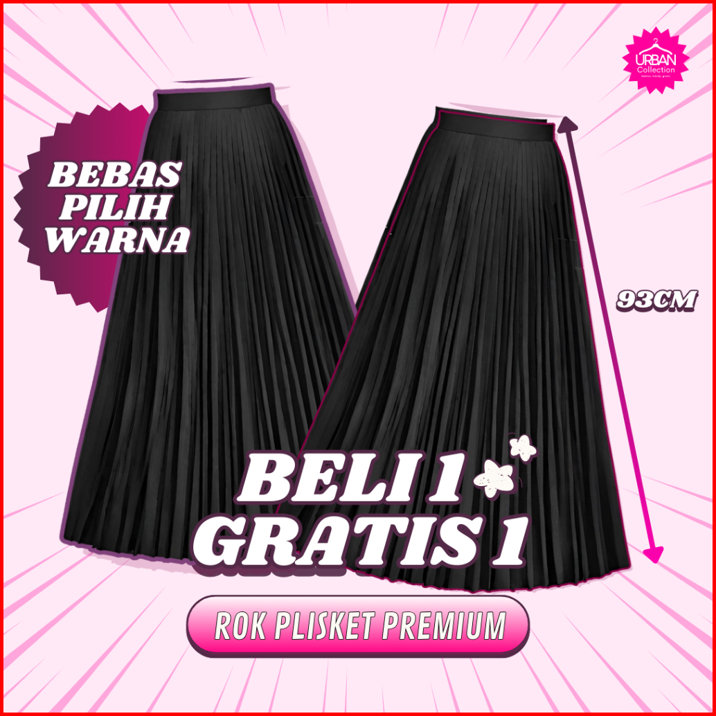 Spesial Bundle 2 Pcs Rok Plisket Premium Hyget Super Rok Panjang Rok Wanita Allsize 93 Cm