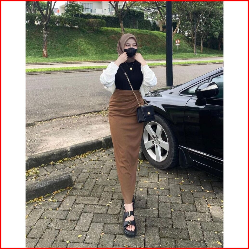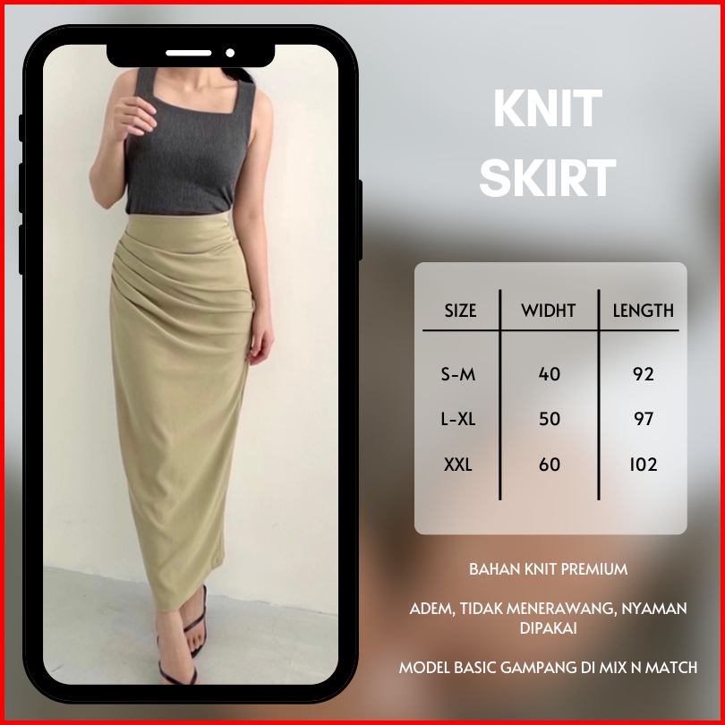 Alterna - Rok Knit Panjang Wanita Maxi Skirt Rok Span Korean Style Rok Casual Kerja Wanita V1