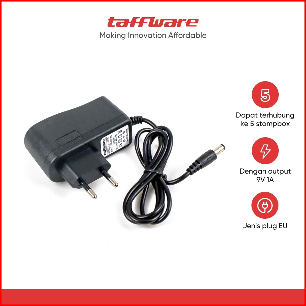 Taffware Power Supply Adaptor Eu 9v 1a 5mm Polaritas Center Positif - Yery-0910 - Black