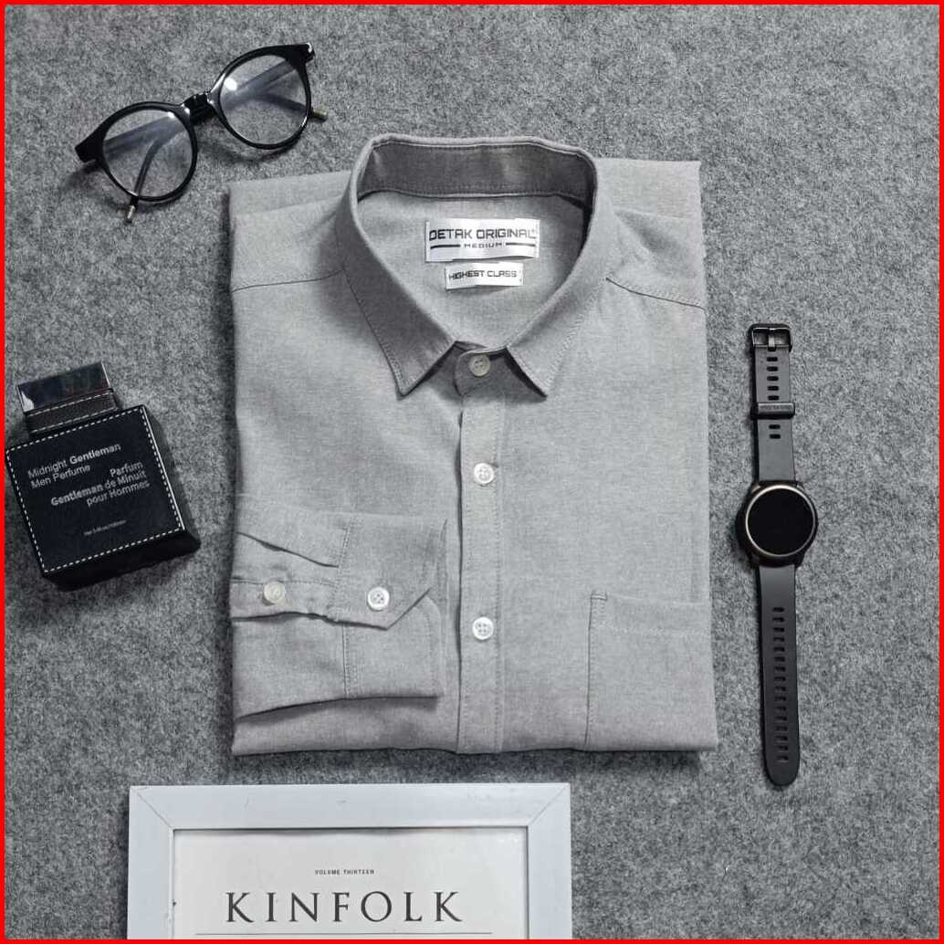 Detak Original Kemeja Polos Pria Lengan Panjang Oxford Abu Muda