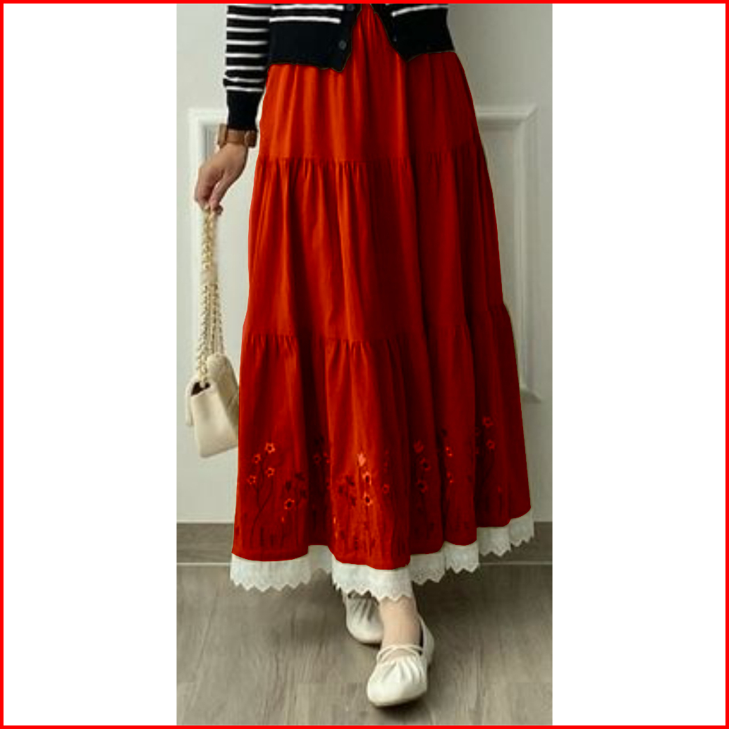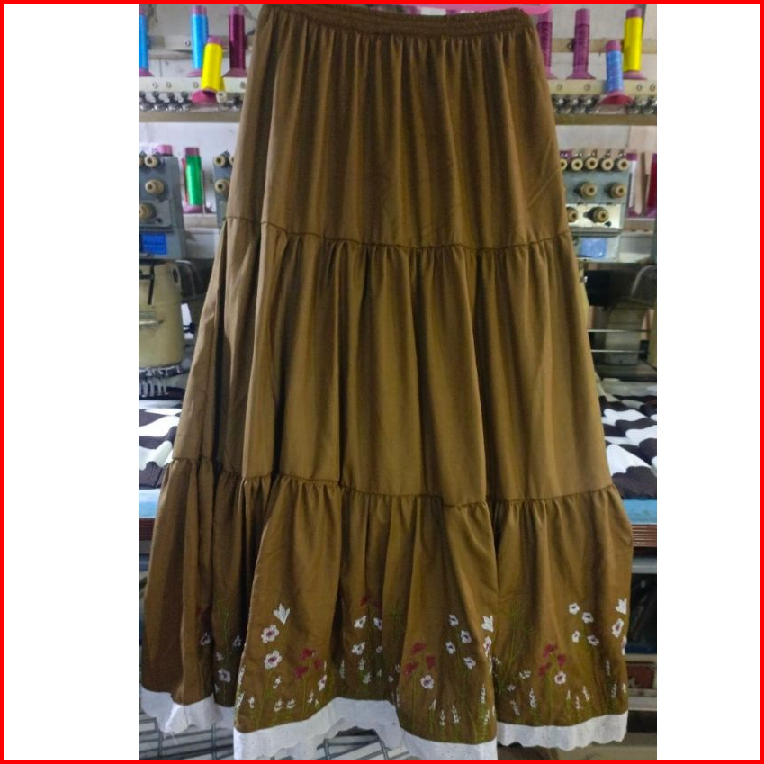 Skirt Floral Rok Susun Tiga Motif Bordir Bunga Kekinian Pinggang Karet Modis Wanita Abg Muslimah