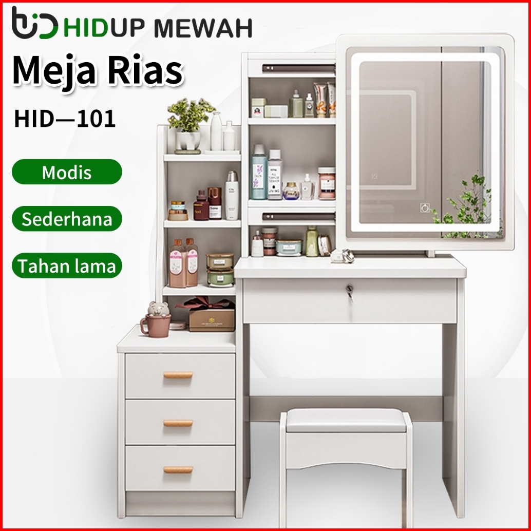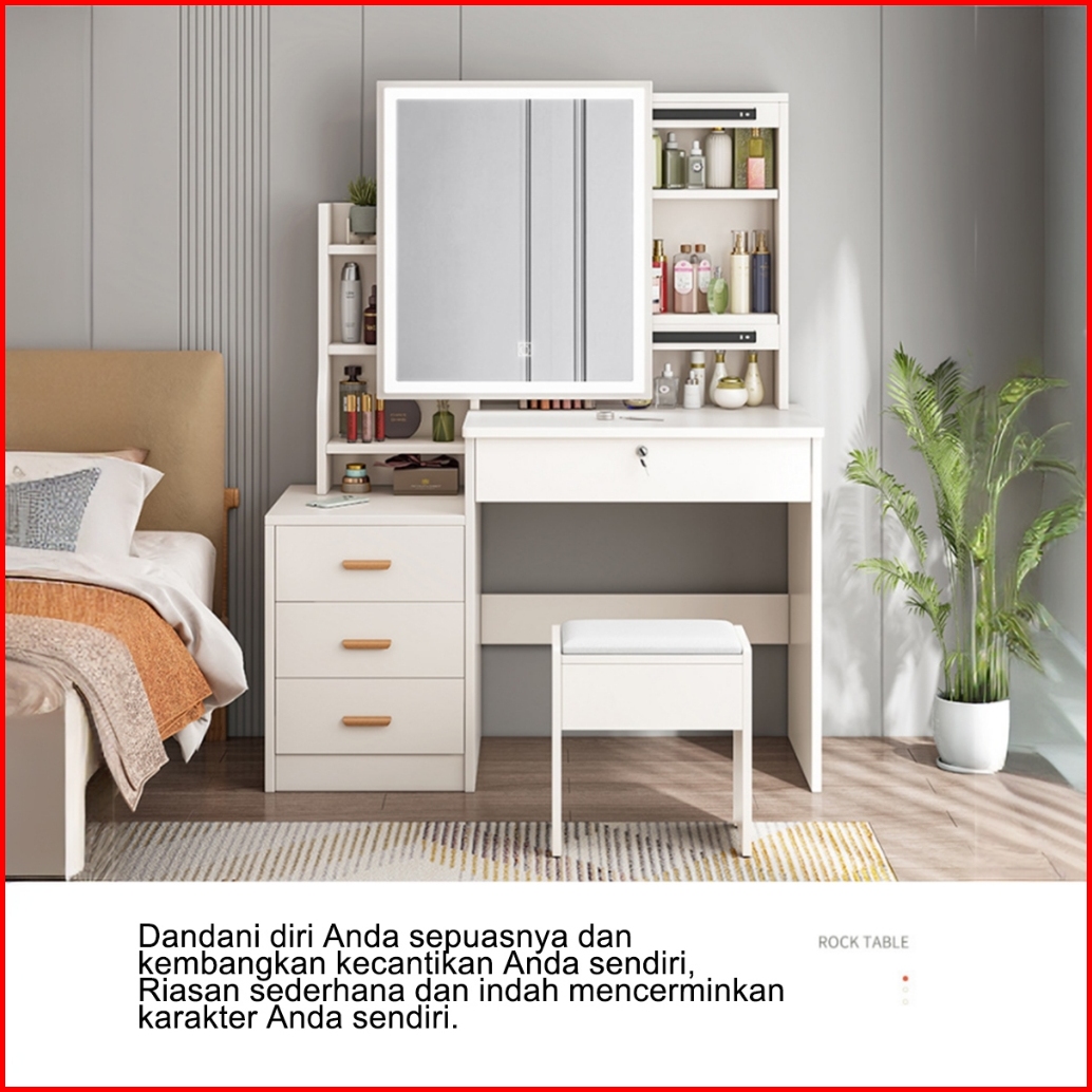 Meja Rias Aesthetic Putih Led Meja Make Up Kaca Sliding Dengan Lampu Led Minimalis Meja Rias Modern Minimalis