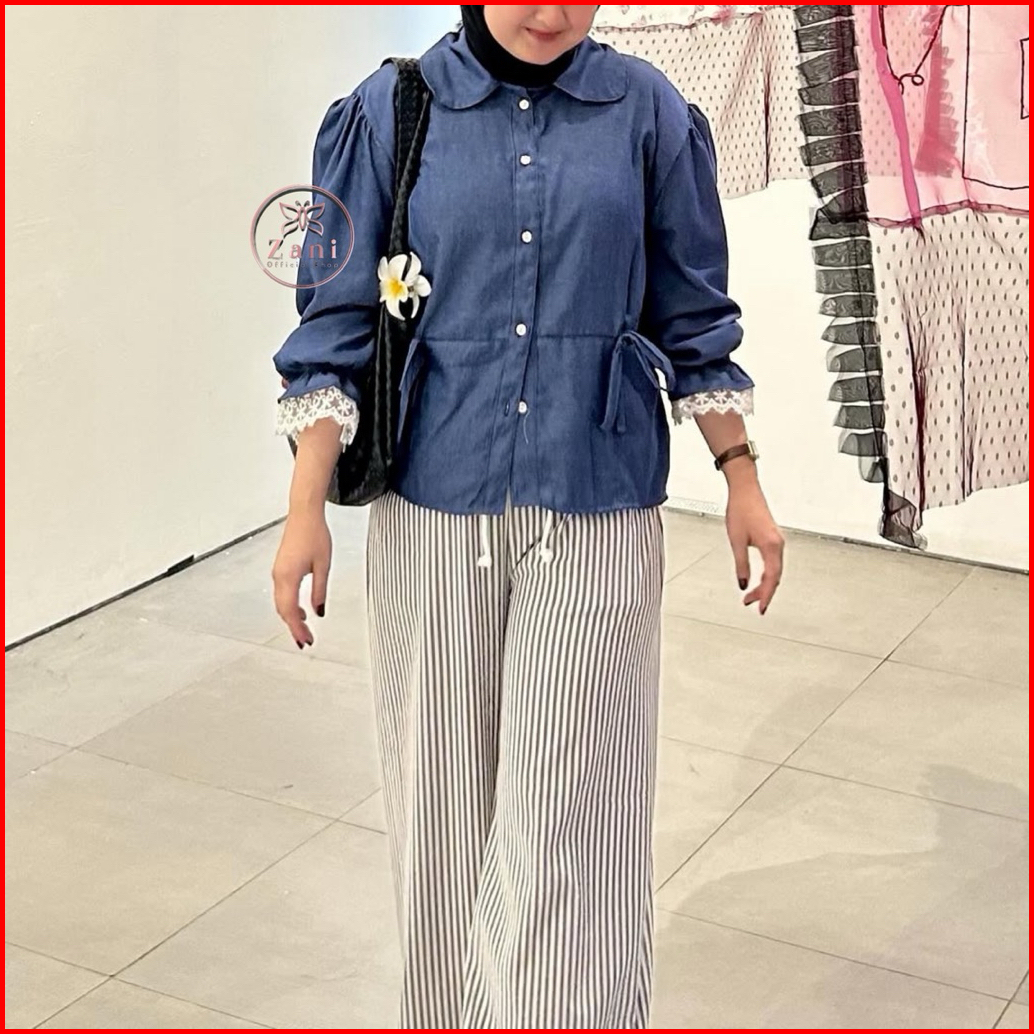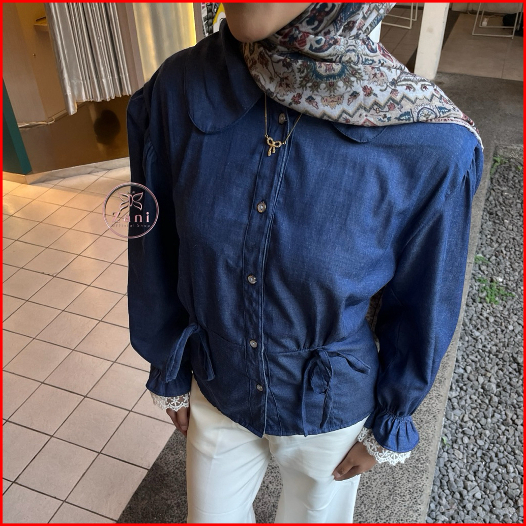 Zani - Bonie Blouse Lace Denim Atasan Wanita Renda