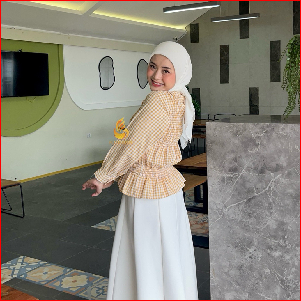 Zani - Pamela Blouse Kerut - Atasan Wanita Casual Motif Kotak