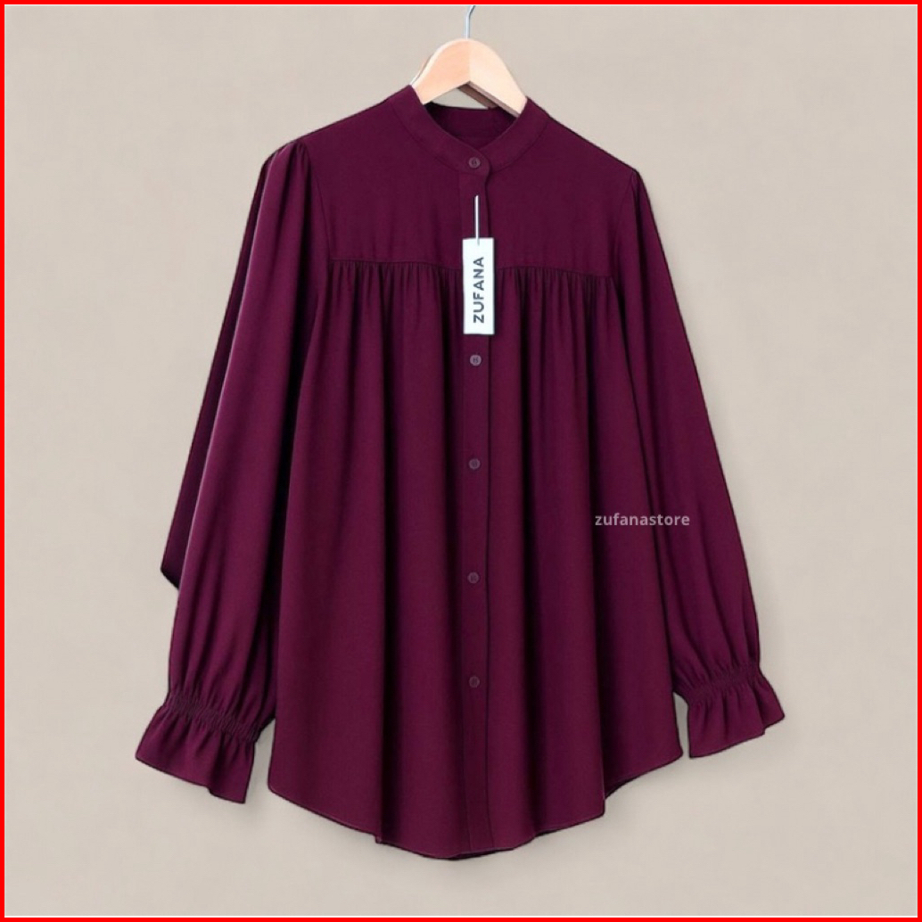 Alyssa Blouse Rayon Twill Atasan Kemeja Blouse Wanita Polos Model Oversize