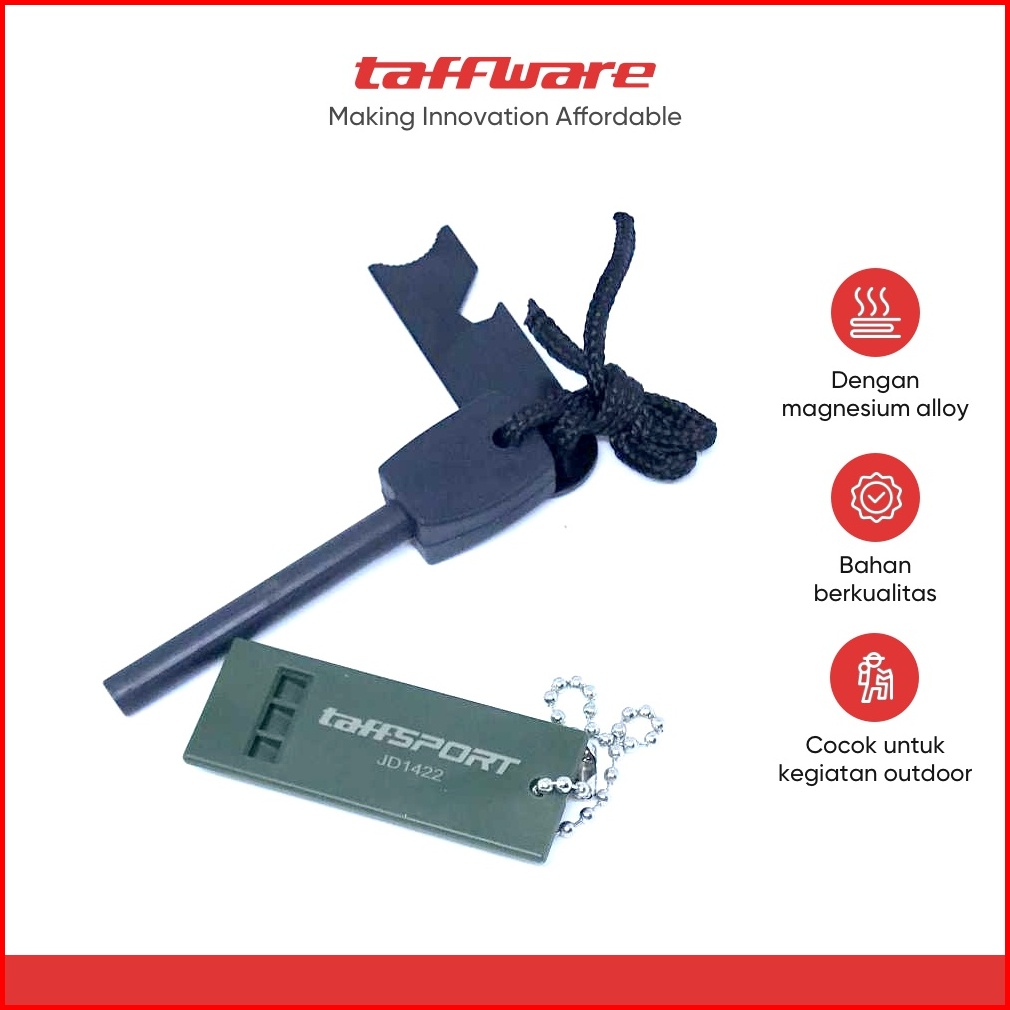 Taffsport Outdoor Survival Magnesium Flint Stone With Whistle - Jd1422 - Black