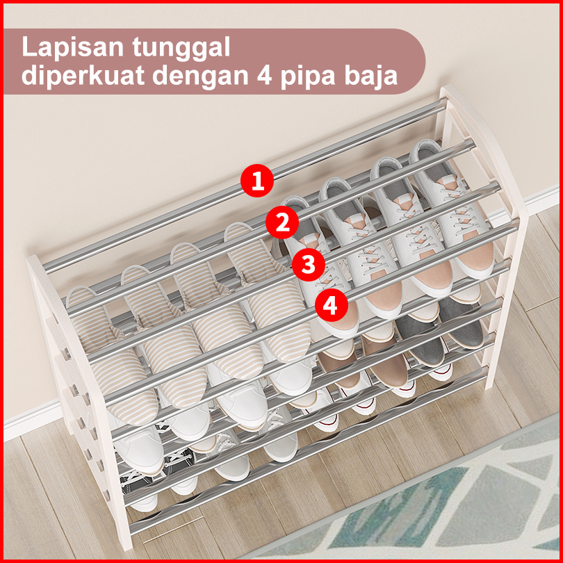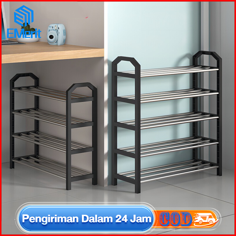 Rak Sepatu 5 Susun Hitam Tempat Sepatu Rak Sandal Portable Bahan Plastik Steel Tube