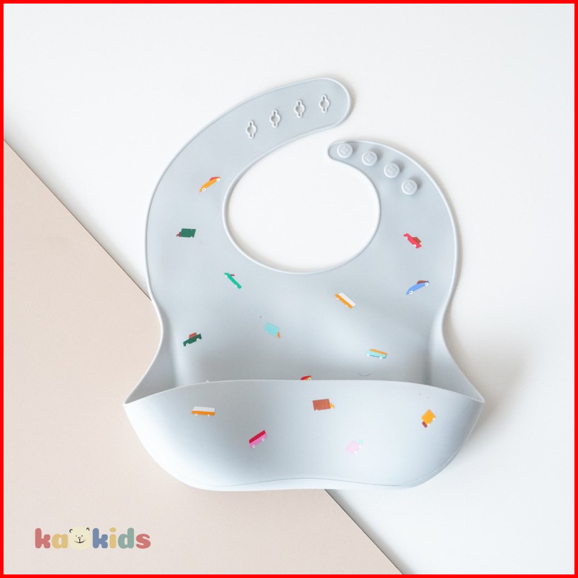 Kaokids Printed Silicone Baby Bib Celemek Bayi Silikon Slabber Bayi