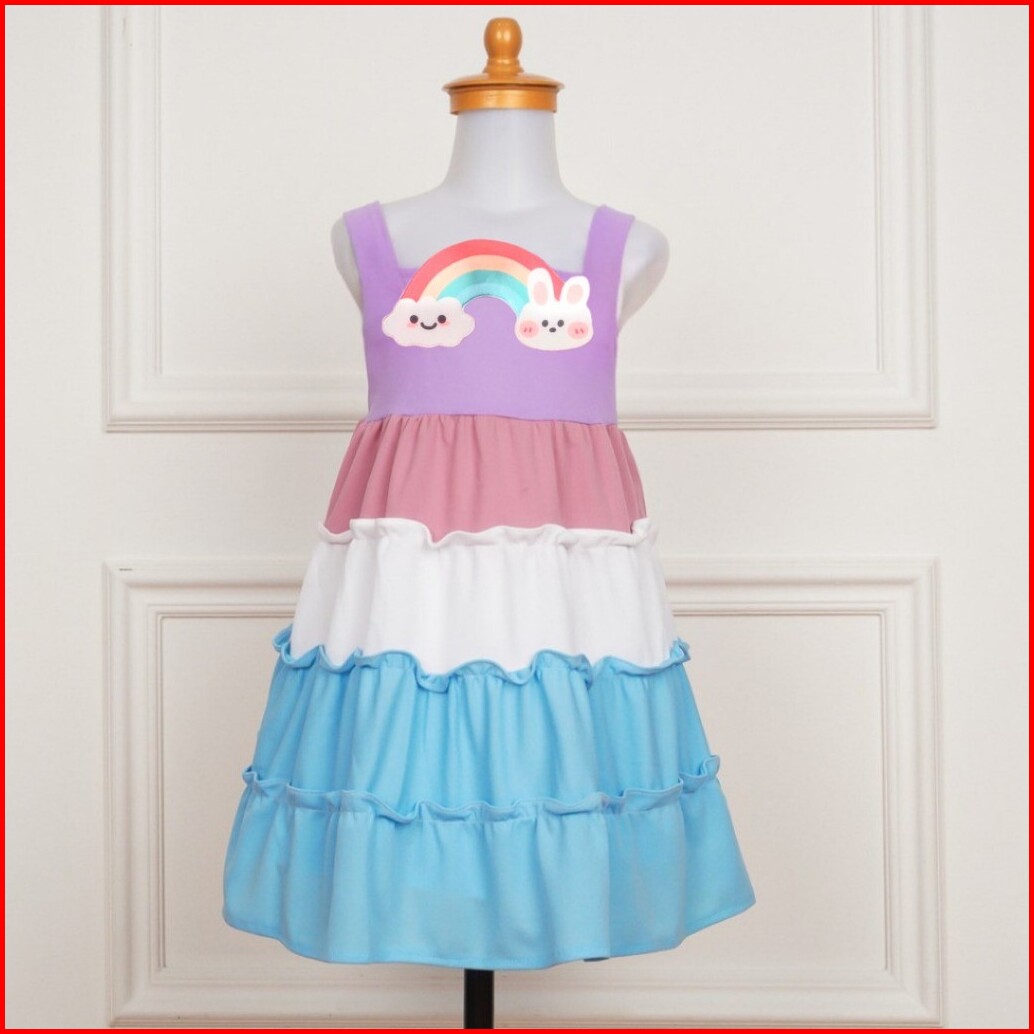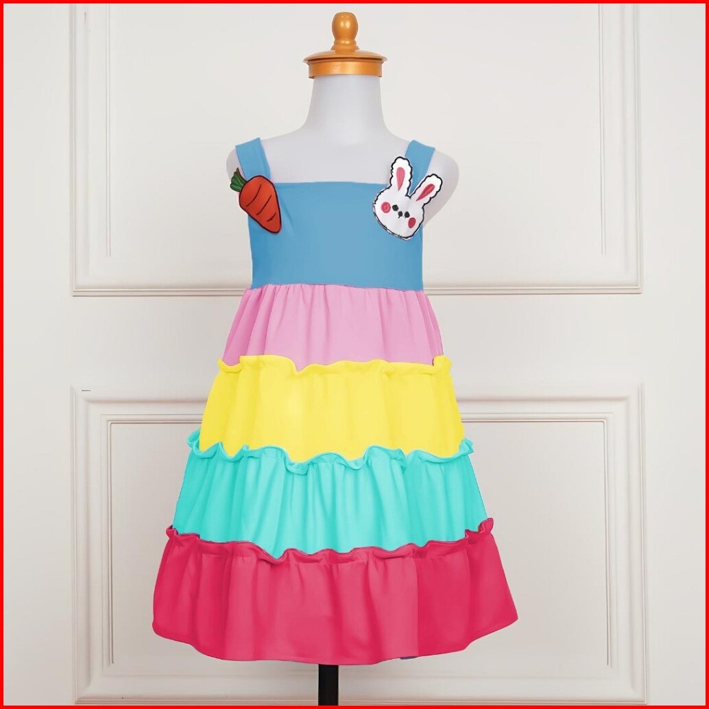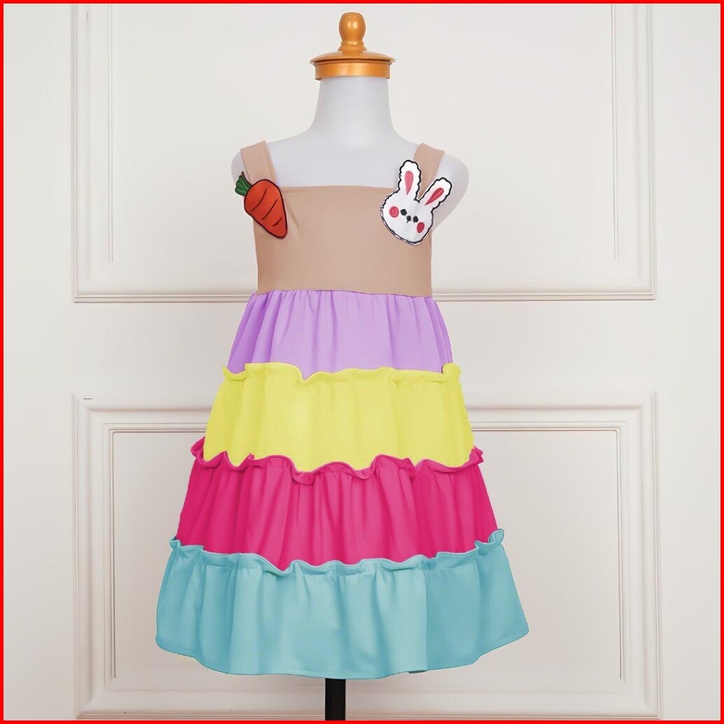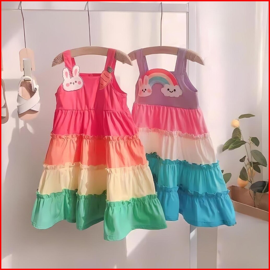 Alesha - Dress Anak Yuriko Rainbow Bunny Carrot Bordir Lucu Fashion Dress Anak Perempuan Korean Style Terbaru
