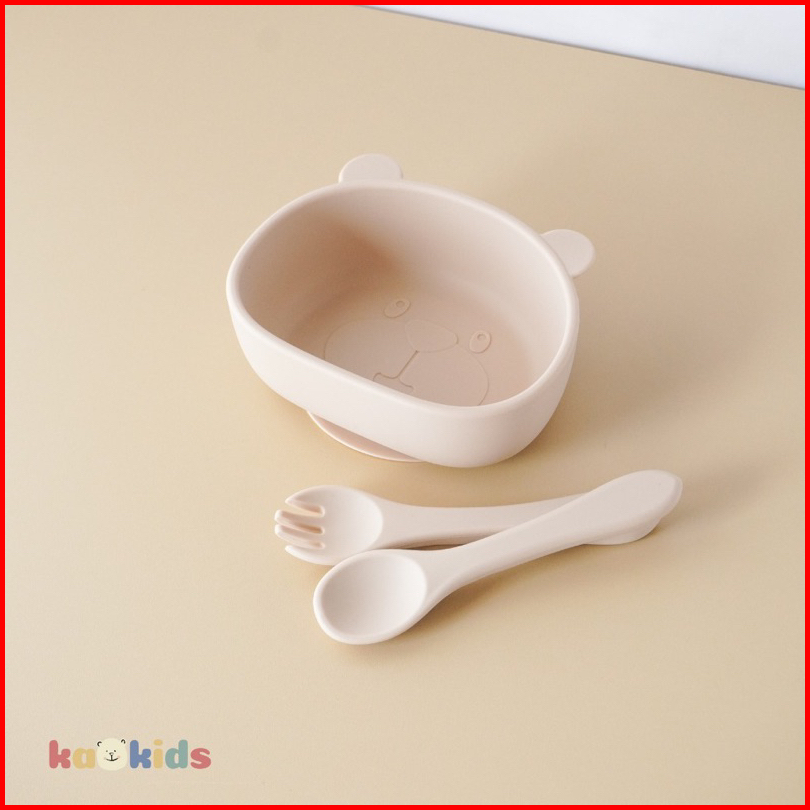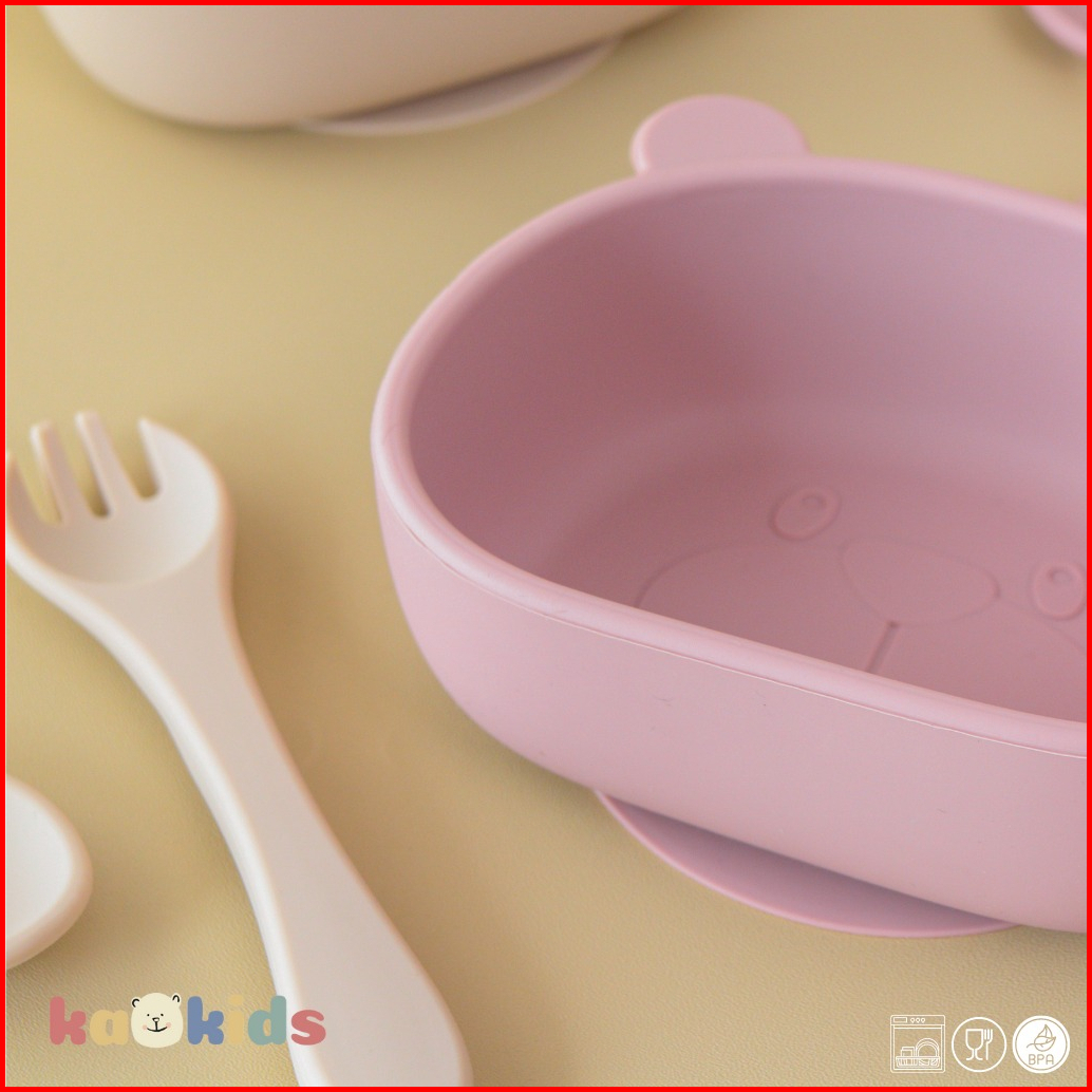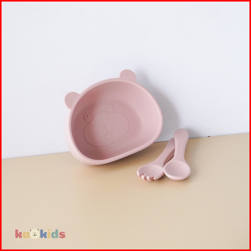 Kaokids Kids Silicone Bear Bowl Set Mangkok Makan Mpasi Silikon Anak Bayi