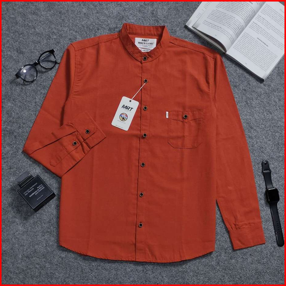 Detak Original Shanghai Kemeja Polos Pria Lengan Panjang Kerah Sanghai Terakota