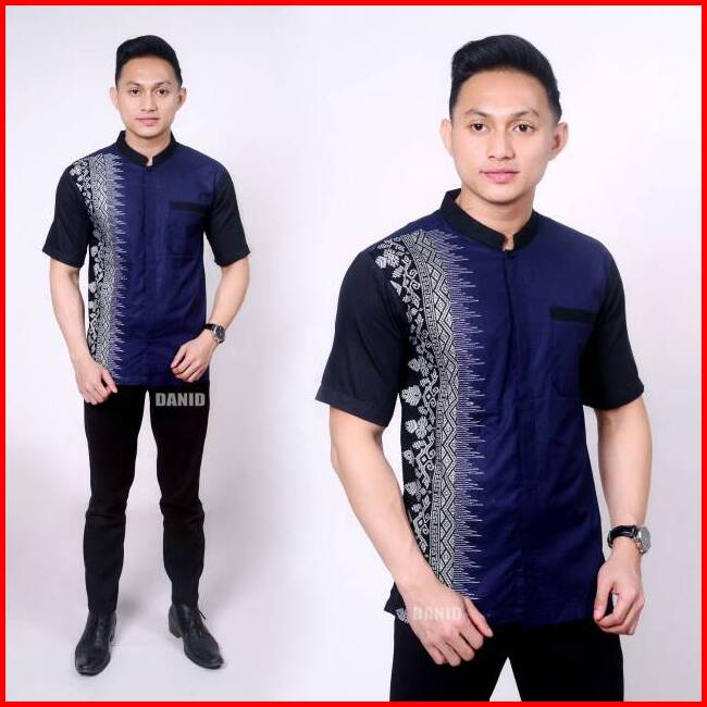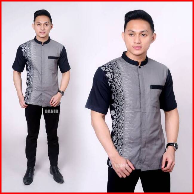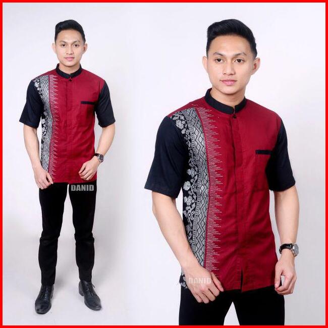 Baju Pria Lengan Pendek Hem Kombinasi Bordir Batik Kerah Sanghai Db 110