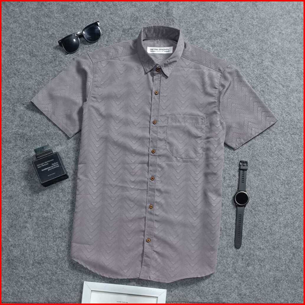 Detak Original Kemeja Lengan Pendek Embos Grey Piramid Casual Slim-fit