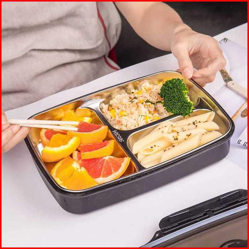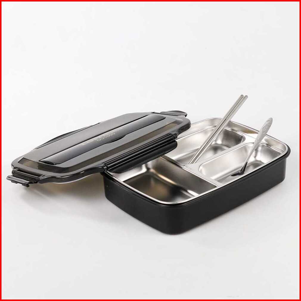 Taffhome Kotak Makan Healthy Bento Lunch Box 3 Grid With Spoon Chopstick - Ou1000 - Black