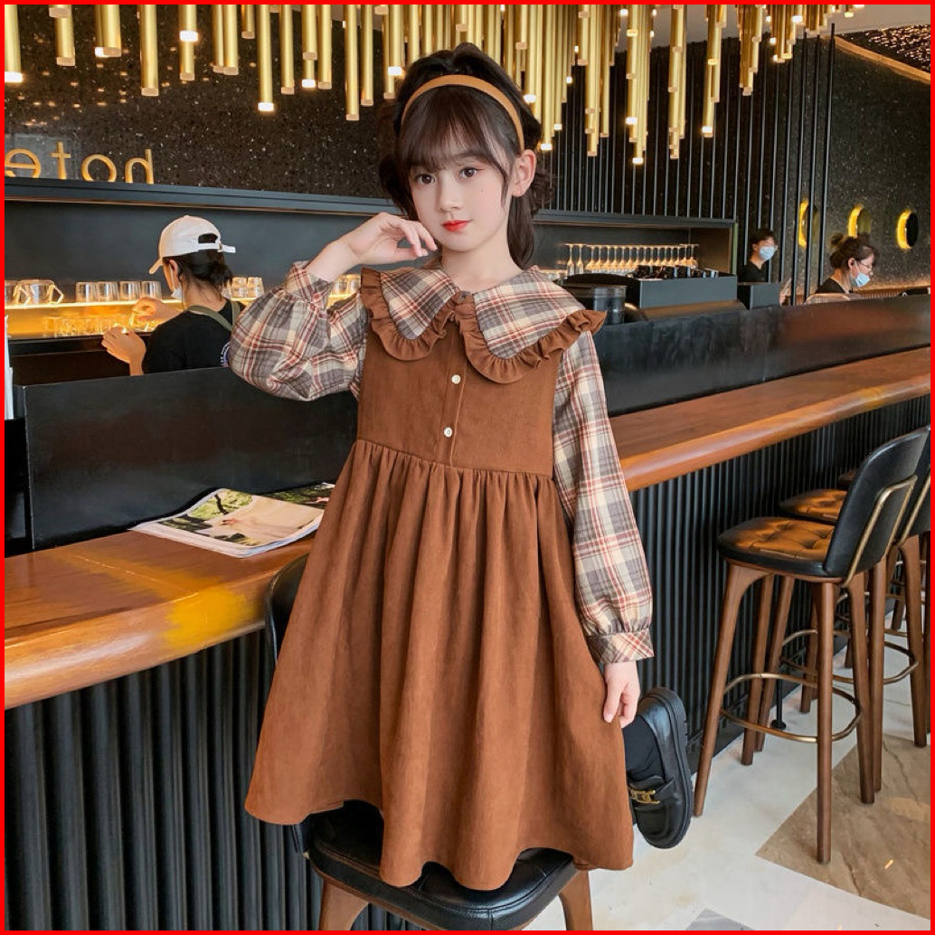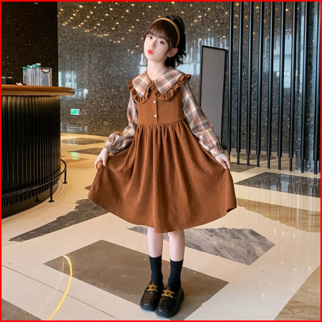 Luxica 4-14 Tahun Dress Fashion Viral Anak Perempuan Termurah Dress Santai Anak Perempuan Panjang Korea Dress Anak Korea